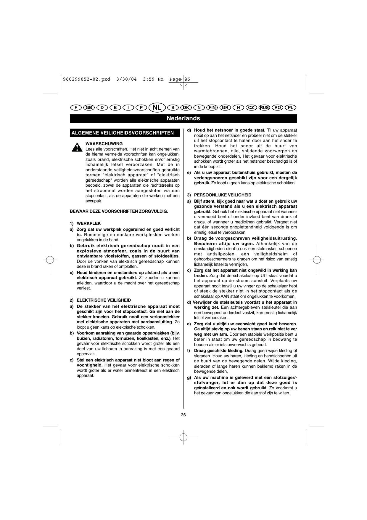 6) RÉPARATIONS a) Les réparations doivent être effectuées par un technicien qualifié et avec des pièces de rechange d'origine uniquement. Vous pourrez ainsiutiliser votre outil électrique en toute sécurité.