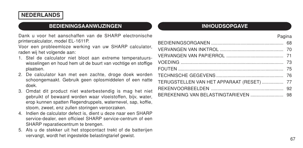 GEBRUIKSAANWIJZING EL1611P SHARP