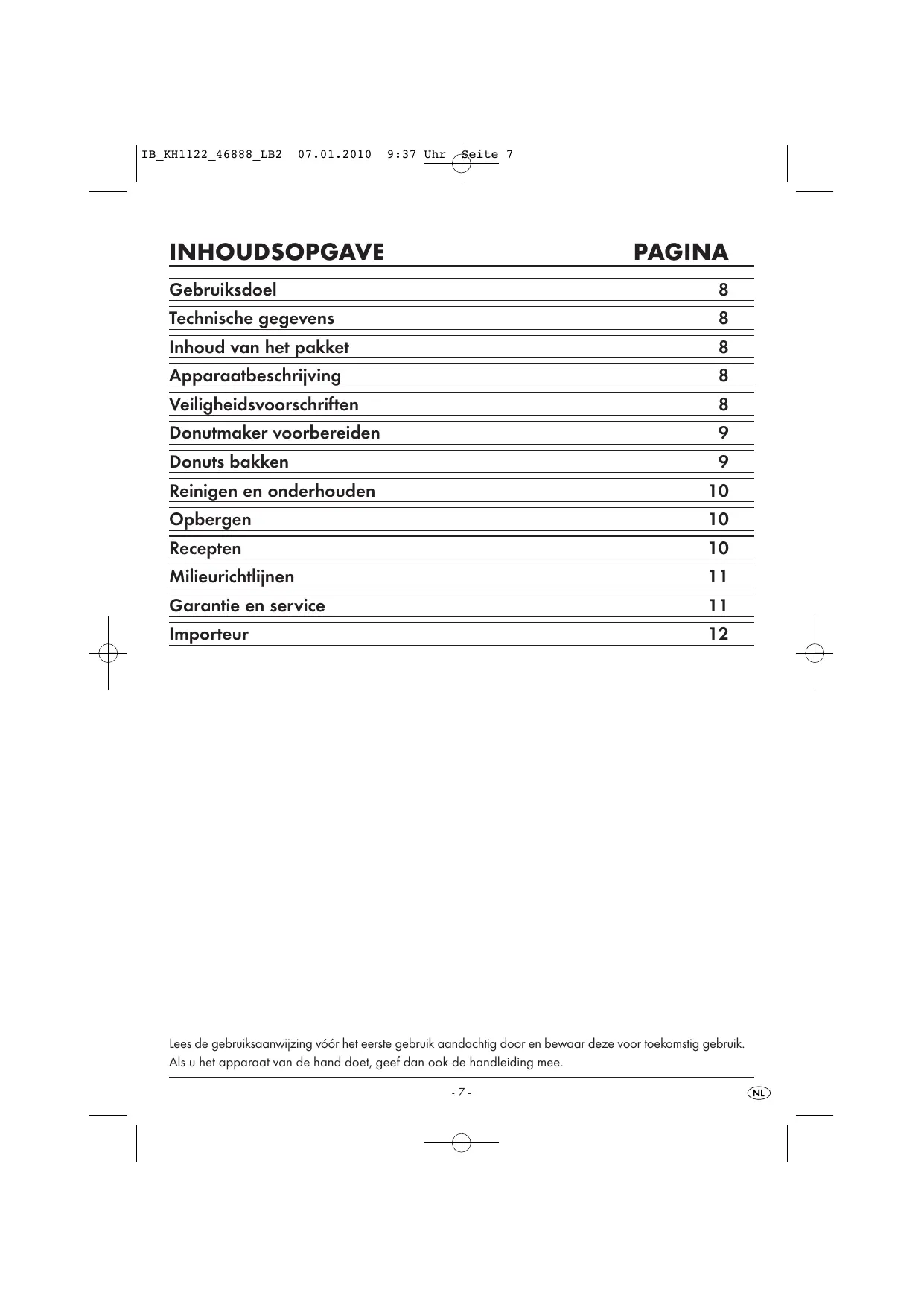 Dit apparaat is voorgezien om donuts te bakken voor het huishoudelijkke gebruik. Het is Niet bestemd voor de bereiding van andere levensmiddelen en Niet voor gebruik in bedrijfsmatige of industrielle omgevingen.