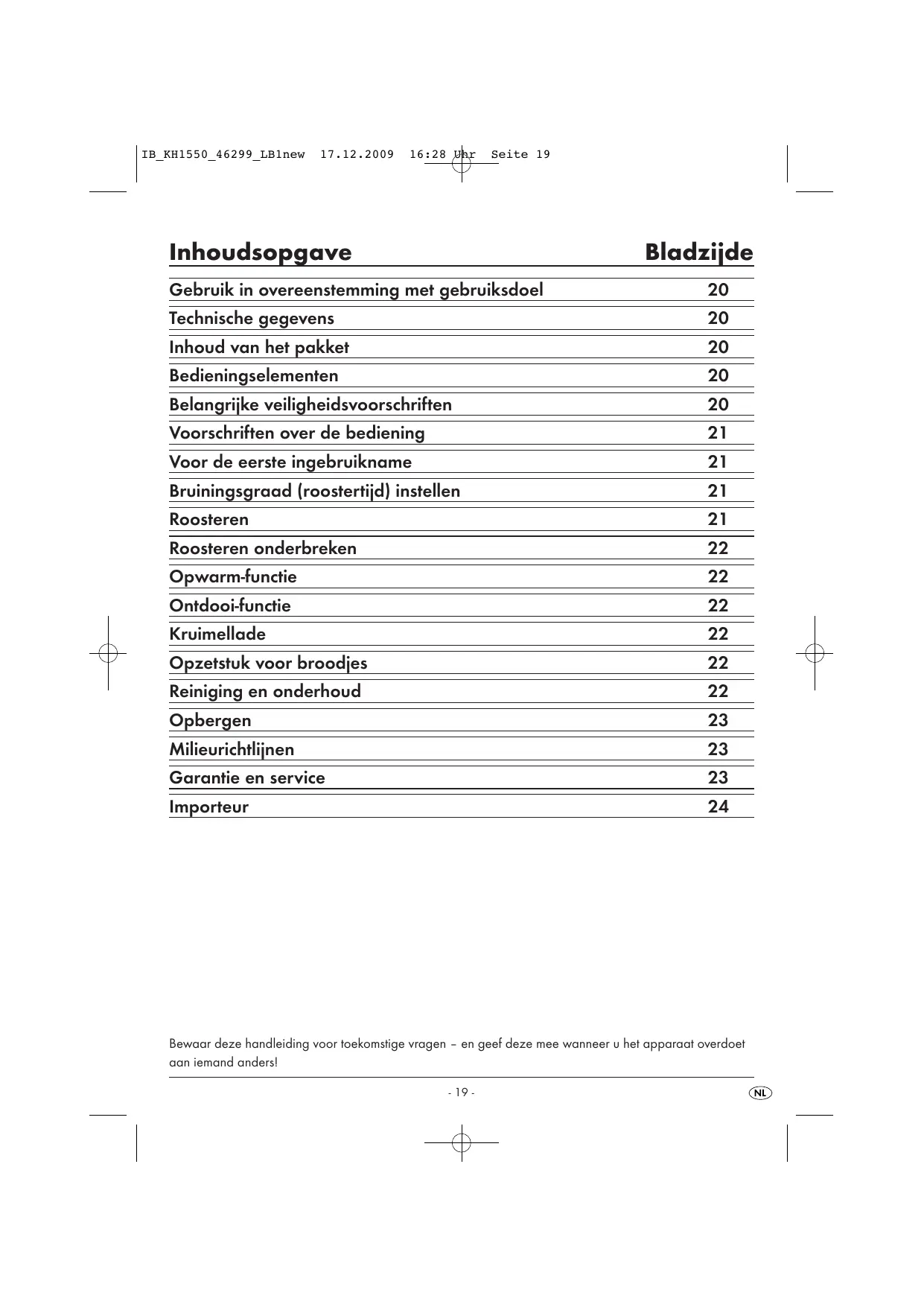 16:28 Uhr Seite 19 Inhoudsopgave Bladzijde Gebruik in overeenstemming met gebruiksdoel