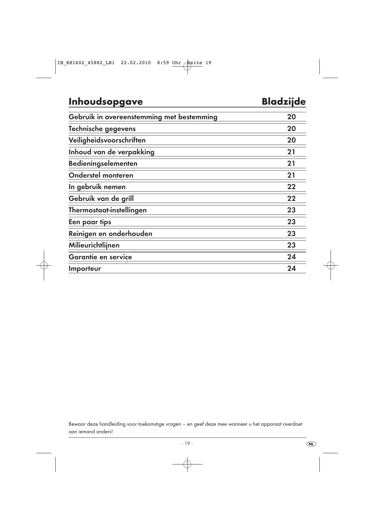 Bewaar deze handleiding voor toekomstige vragen - en geef deze mee wonneer u het apparaat overdoet aan iemand anders!