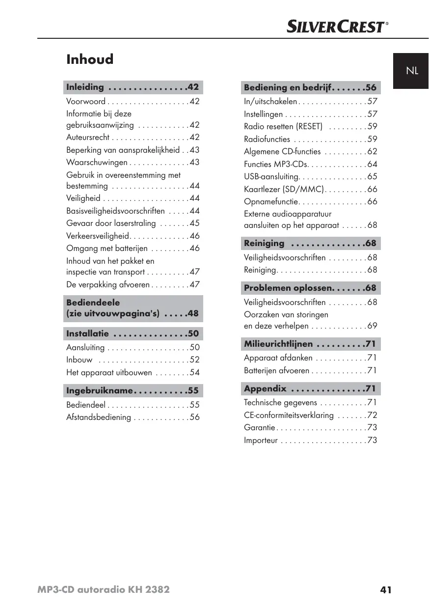 - MP3-CD autoradio KH 2382 Apparaat afdanken p. 71
