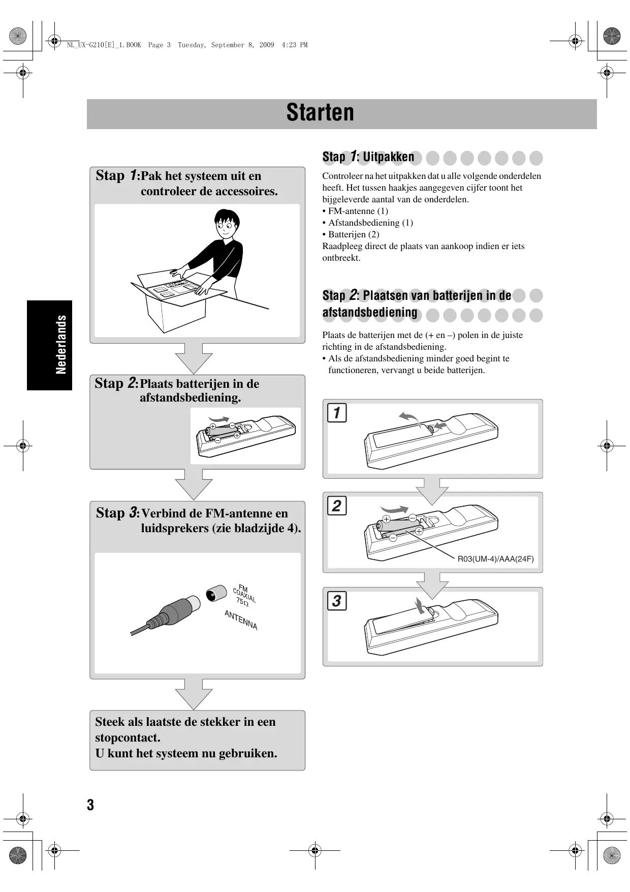 luidsprekers (zie bladzijde 4). R03(UM-4)/AAA(24F)