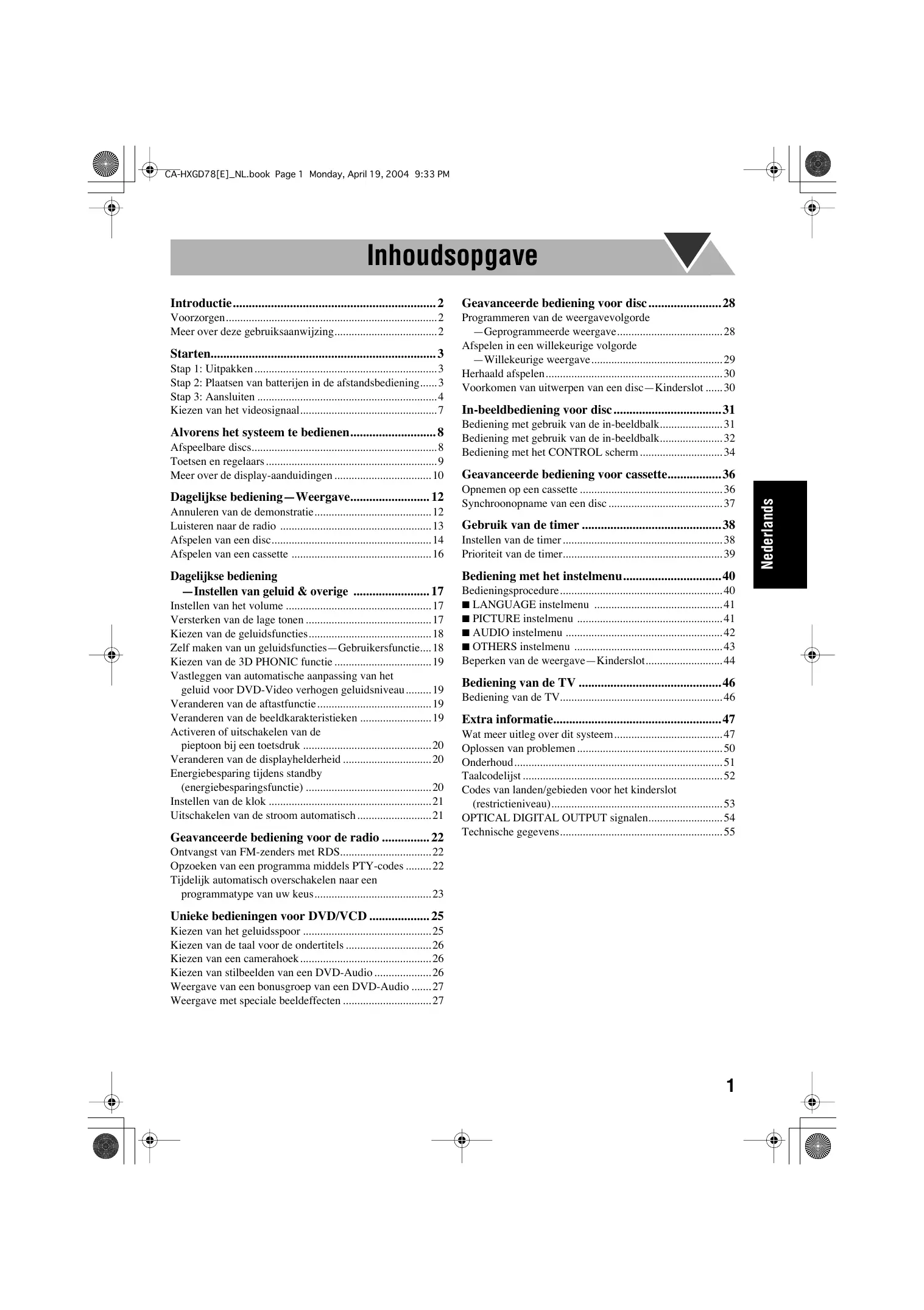 CA-HXGD78[E]_NL.book Page 1 Monday, April 19, 2004 9:33 PM Inhoudsopgave Introductie 2