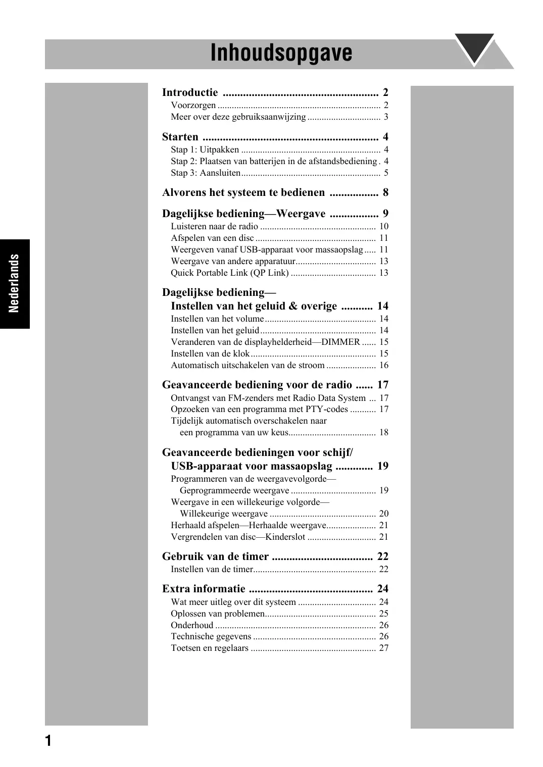 Om brand, elektrische schokken en beschadiging te voorkomen, moet u het toestel als volgt opstellen: 1 Voorkant: Bij het achterpaneel van de eenheid is een ventilator bevestigd om ophoping van hitte in de eenheid te voorkomen zodat de eenheid normaal blijft werken. De ventilator start automatisch te draaien wanneer het volume tot een bepaald niveau wordt verhoogd zodat de eenheid wordt gekoeld.