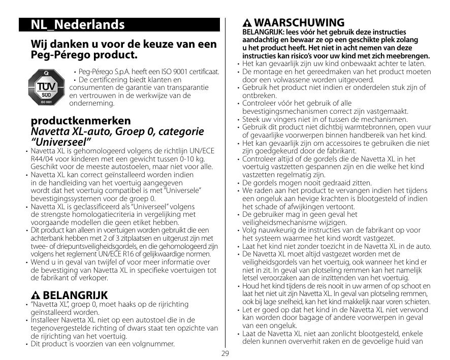 GEBRUIKSAANWIJZING NAVETTA XL PRIMO VIAGGIO PEG PEREGO