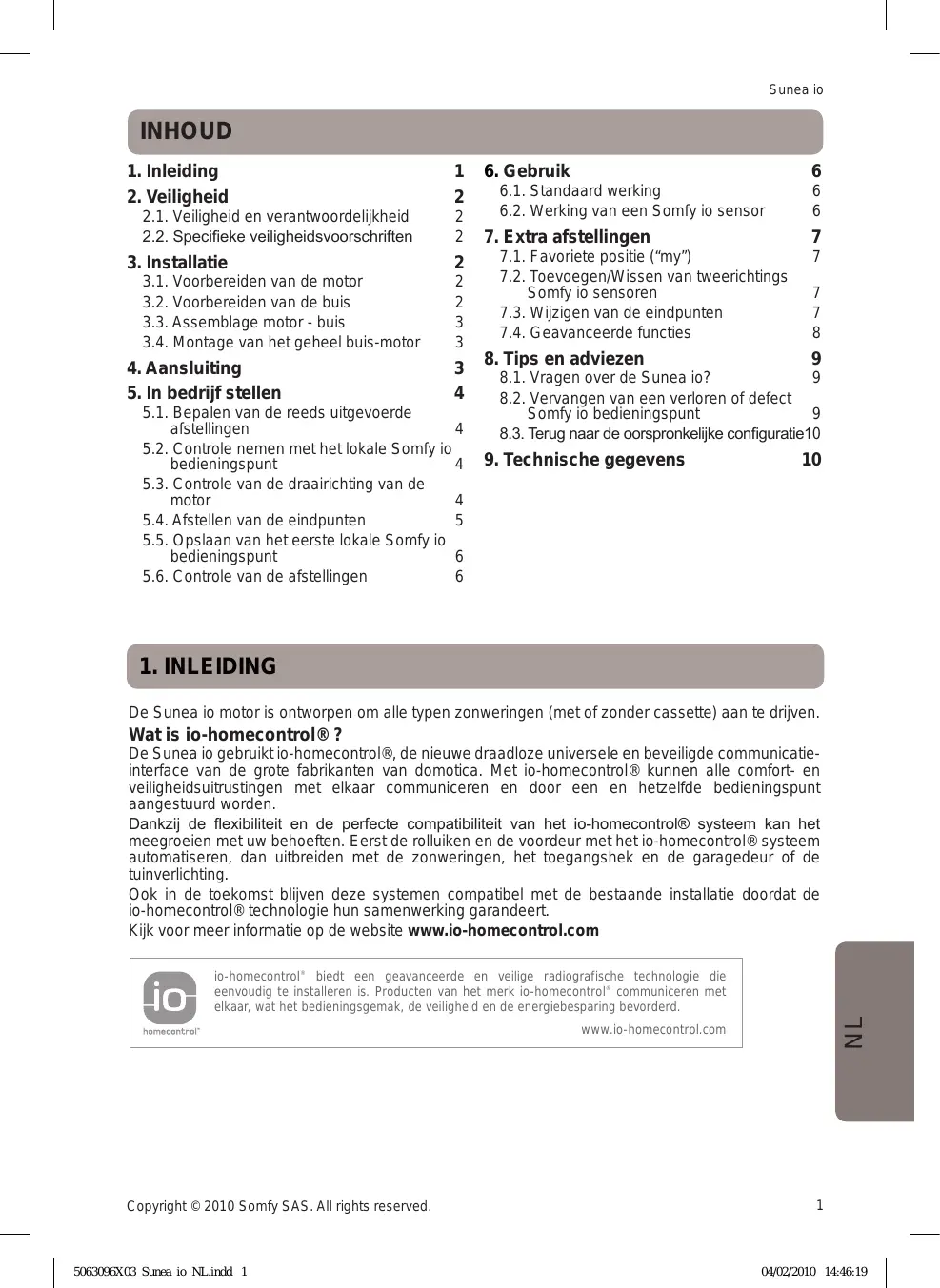 GEBRUIKSAANWIJZING SUNEA IO SOMFY