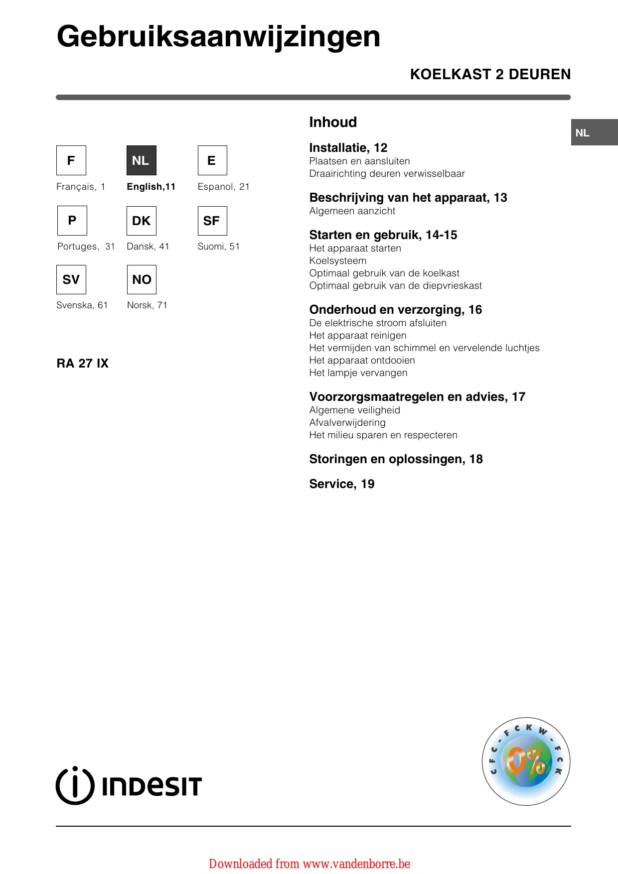 GEBRUIKSAANWIJZING RA 27 IX INDESIT