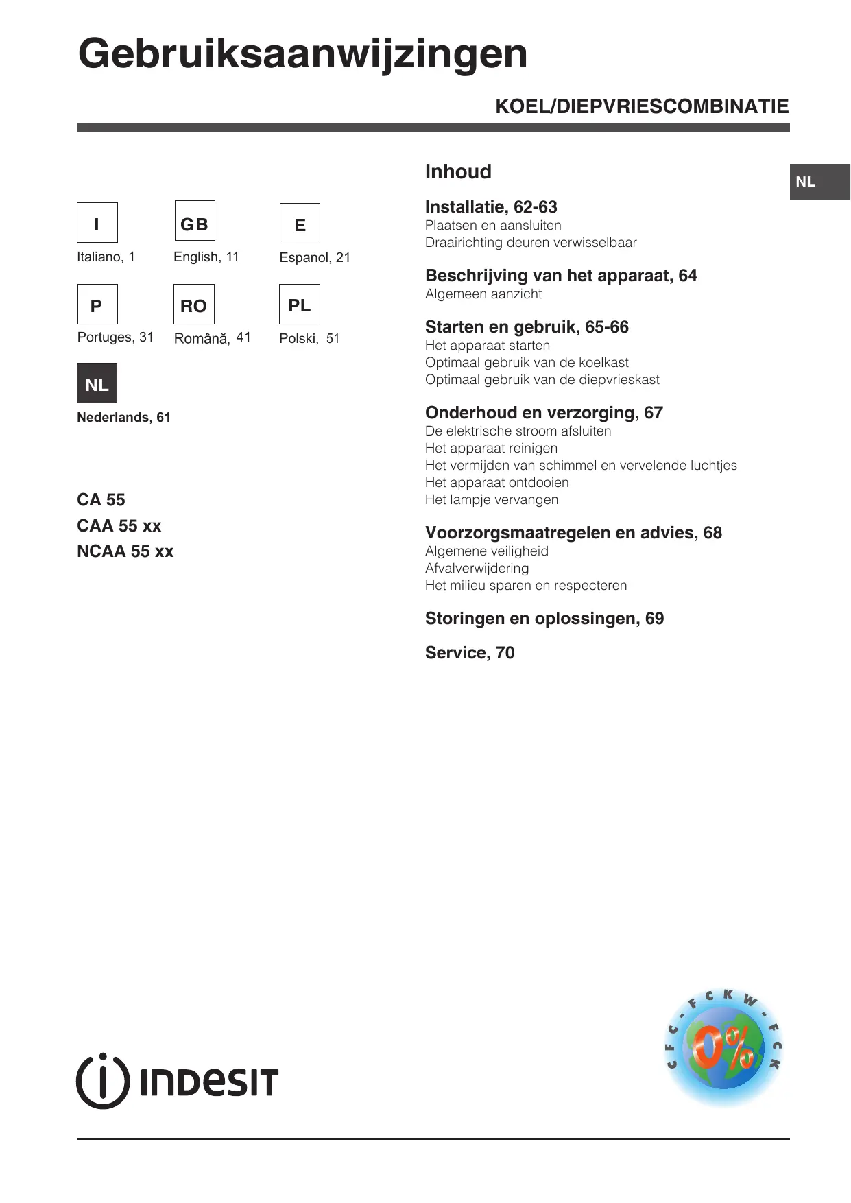 NCAA 55, NCAA 55 K - Combinatiekoelkast INDESIT - Gratis gebruiksaanwijzing en handleiding
