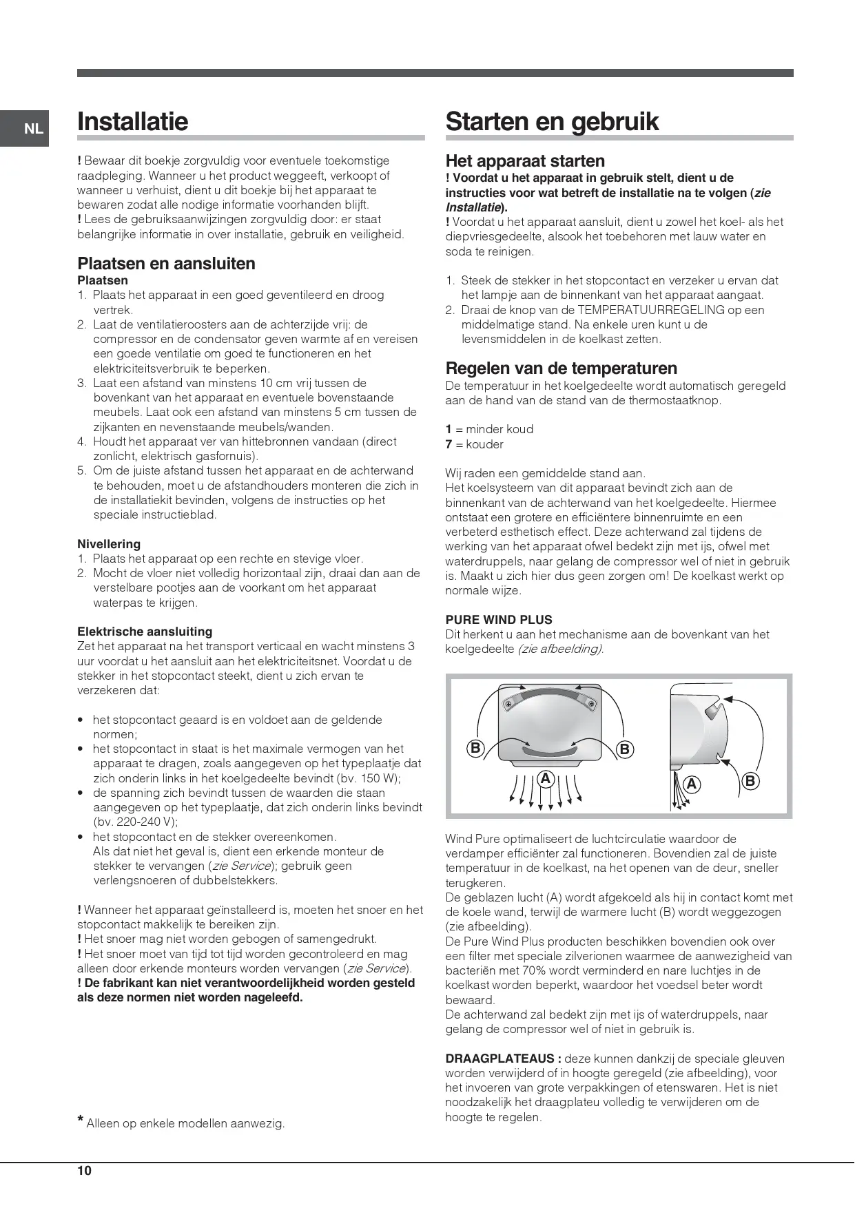 + _HetPURE WIND PLUS systeem wordtalleen dan automatisch geactiveerd als het noodzakelik is de optimale condities aan de binnenkant van het koelgedeelte terug te brengen