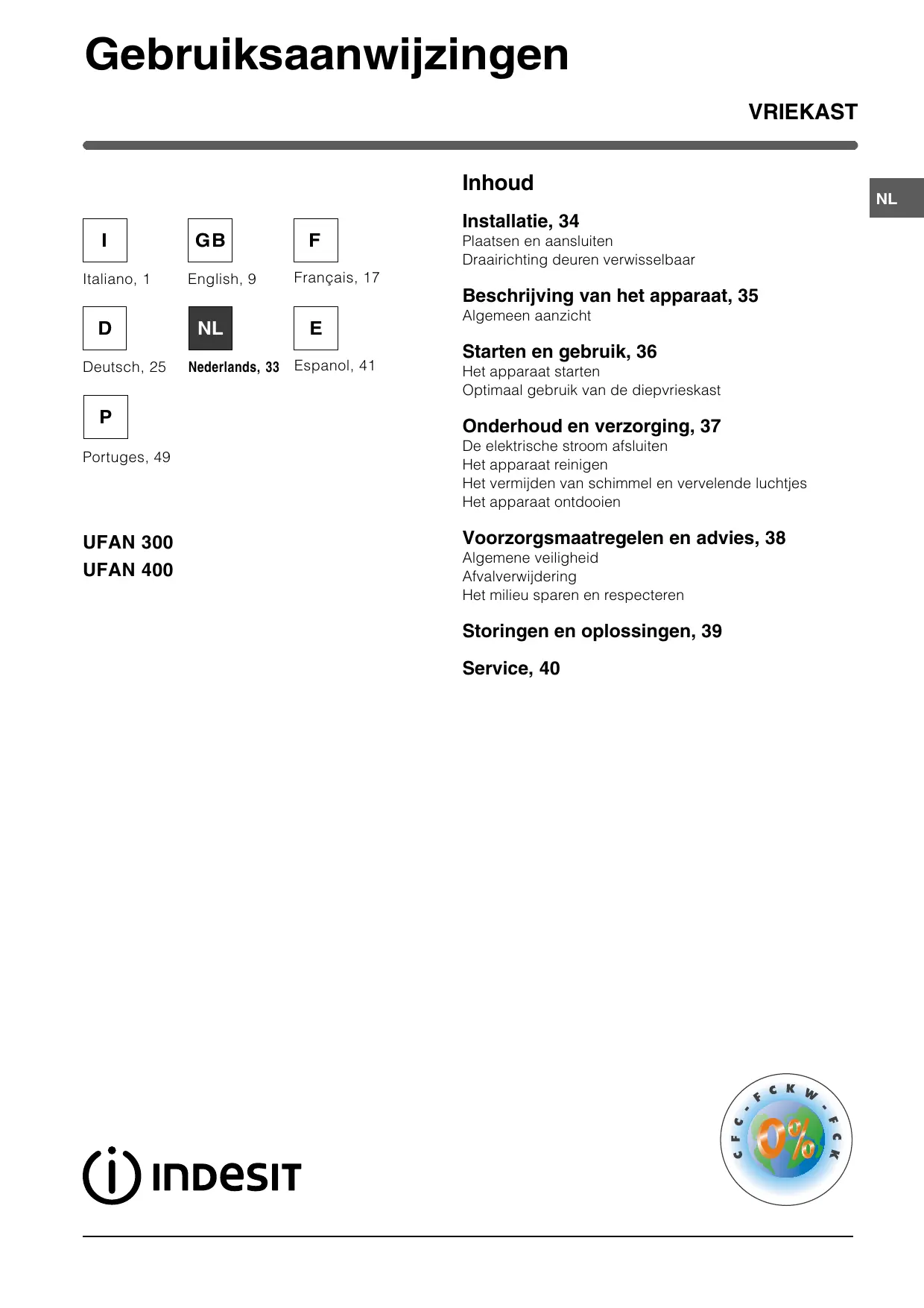 GEBRUIKSAANWIJZING UFAN300 INDESIT