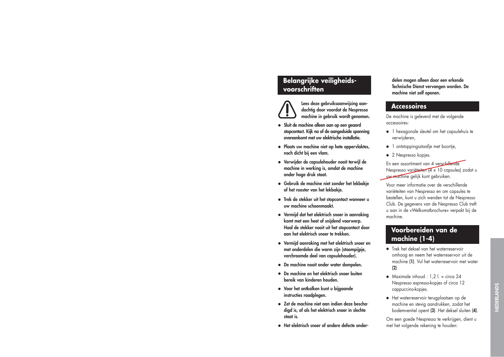 Lees deze gelebruiksaanwijzing aan-dachtig door voordat de Nespresso machine in geleruik worden genomen.