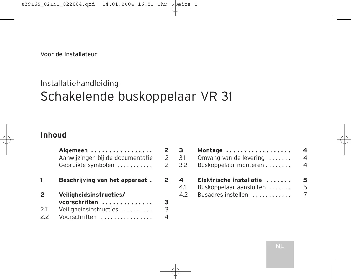 Notice d’installation - Coupleur de bus à commutation VR 31