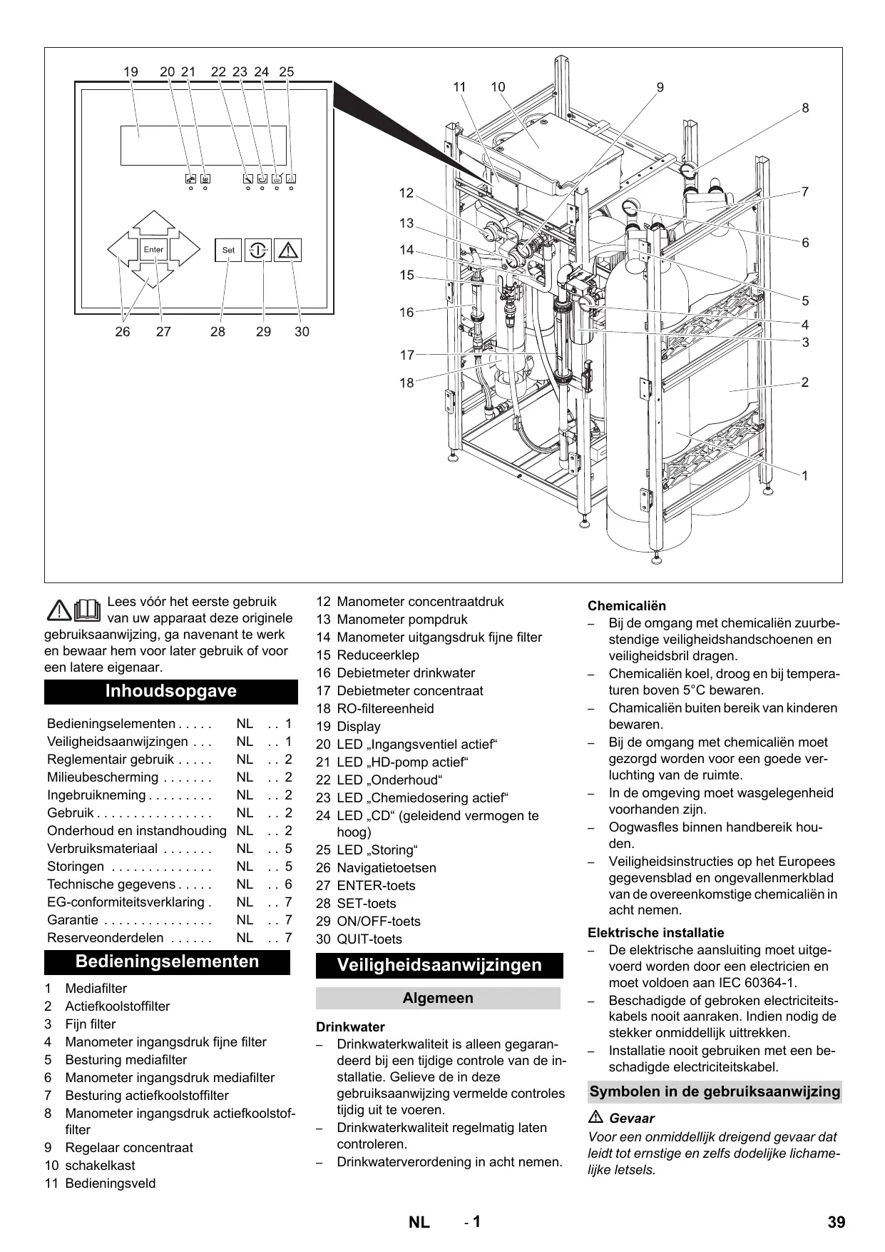 Danger de santé par une mauvaise qualité d'eau potable. Pour pouvoir garantir la qua- lité d'eau potable, les contrôles doivent être accomplis au terme fixé par la suite le plan de soins. Si des différences de l'état nor- mal ne peuvent pas être éliminées par les mesures données, la production d'eau po- table doit être arrêtée et le service après- vente Kärcher doit être informé.