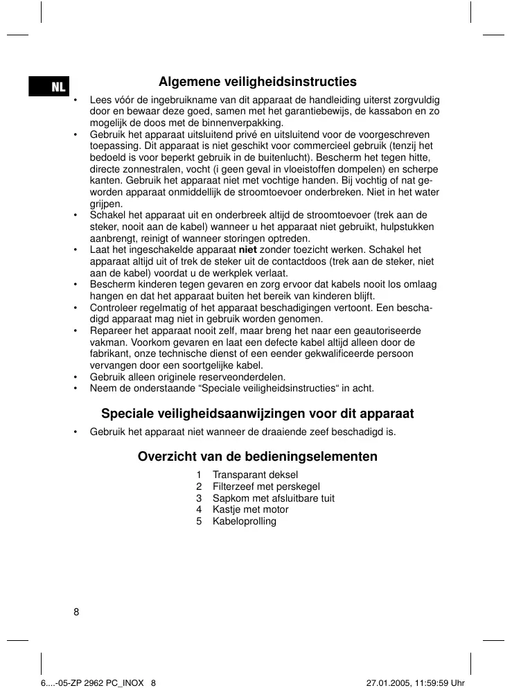Speciale veiligheidsaanwijzingen voor dit apparaat Overzicht van de bedieningselementen 1 2 3 4 5