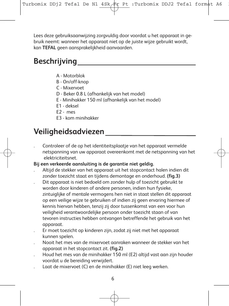 Download de handleiding voor uw in PDF-formaat gratis! Vind uw handleiding DDJ206 - TEFAL en neem uw elektronisch apparaat weer in handen. Op deze pagina staan alle documenten die nodig zijn voor het gebruik van uw apparaat. DDJ206 van het merk TEFAL.