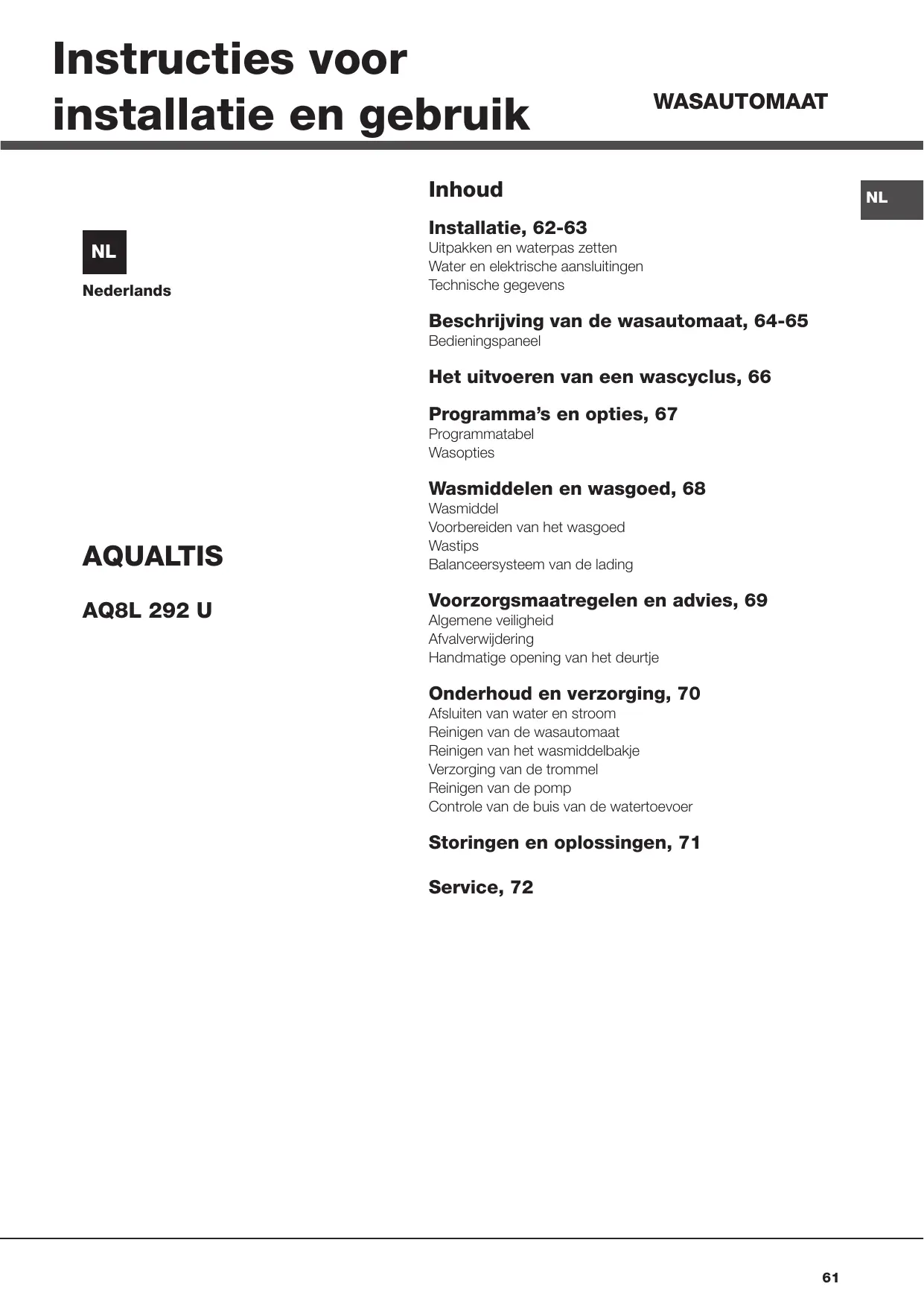 GEBRUIKSAANWIJZING AQ8L 292 U HOTPOINT