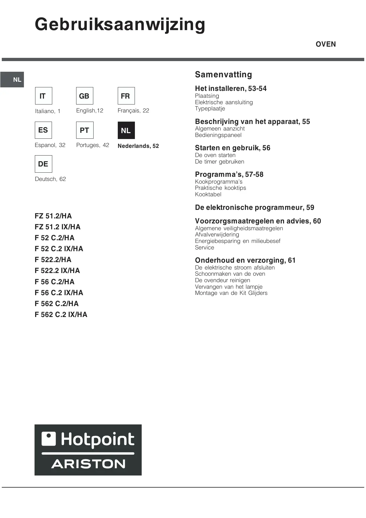 GEBRUIKSAANWIJZING FZ 51.2 IX/HA HOTPOINT