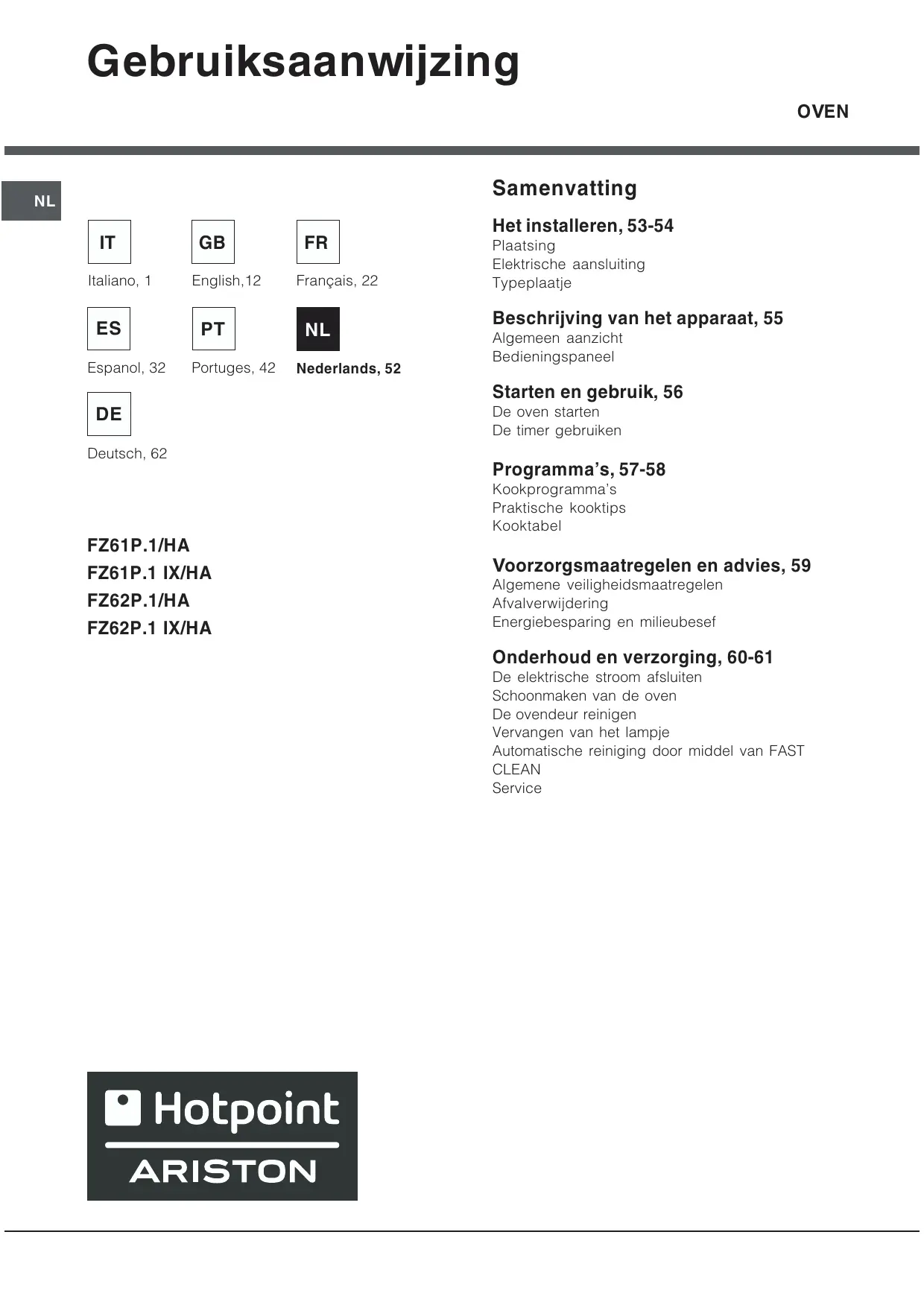 GEBRUIKSAANWIJZING FZ 61 P.1 IX /Y /HA HOTPOINT