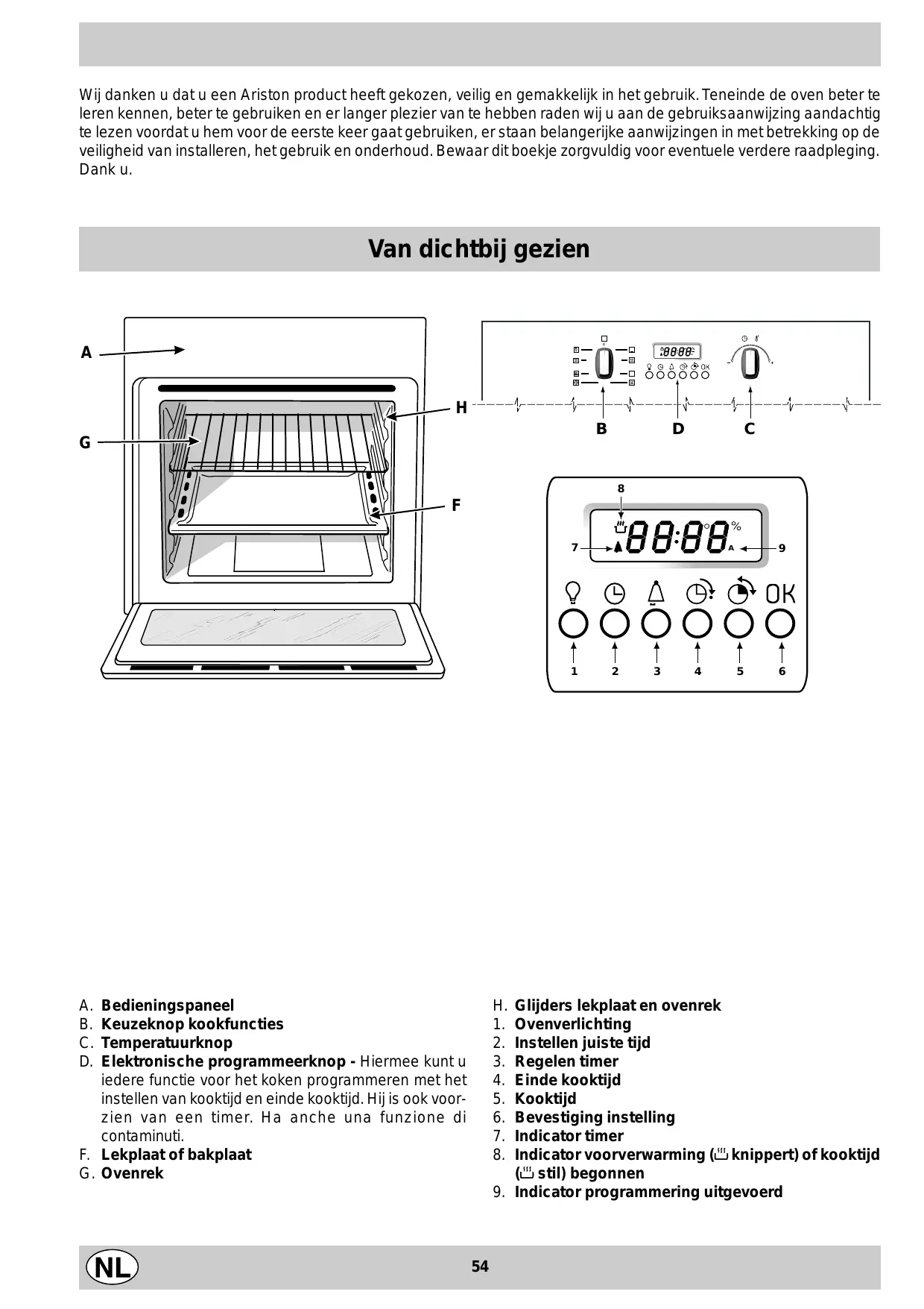 Wij danken u dat u een Ariston product heeft gekozen, veilig en gemakkelijk in het gebruik. Teneinde de oven better te leeren kennen, better te gebruiken en er langer plezier van te hebben raden wij u aan de gebruiksaanwijzing aandachtig te lezen voordat u hem voor de eerste koer gaat gebruiken, er staan belangerijke aanwijzingen in met betrekking op de veiligkeit van installereren, het gebruik en onderhoud. Bewaar dit boekje zorgvuldig voor eventuele verdere raadpleging. Dank u.