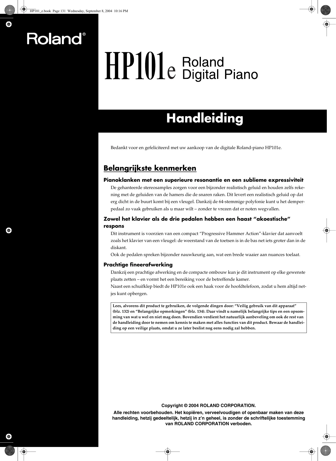 GEBRUIKSAANWIJZING HP-101E ROLAND