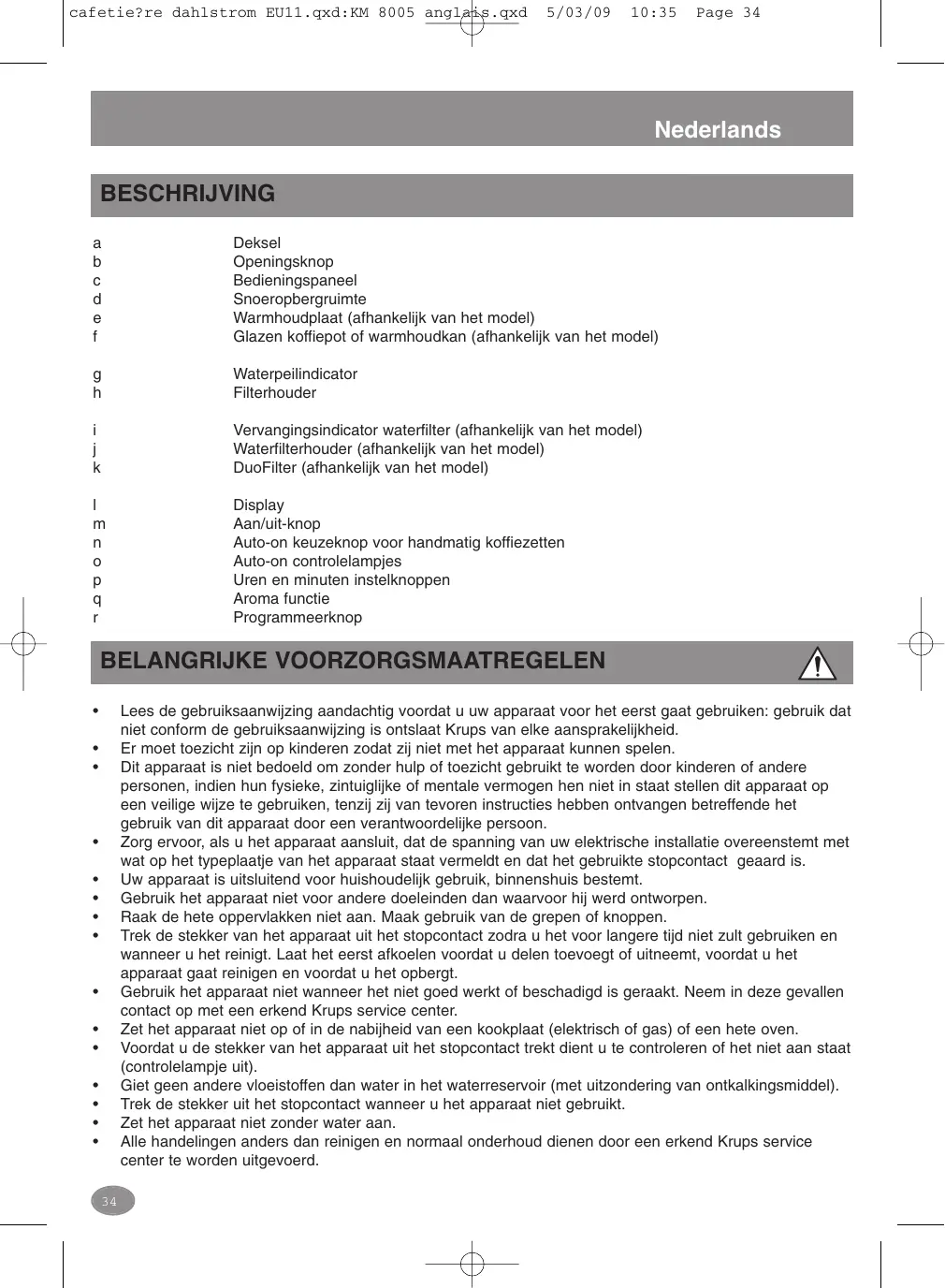 cafetie?re dahlstrom EU11.qxd:KM 8005 anglais.qxd