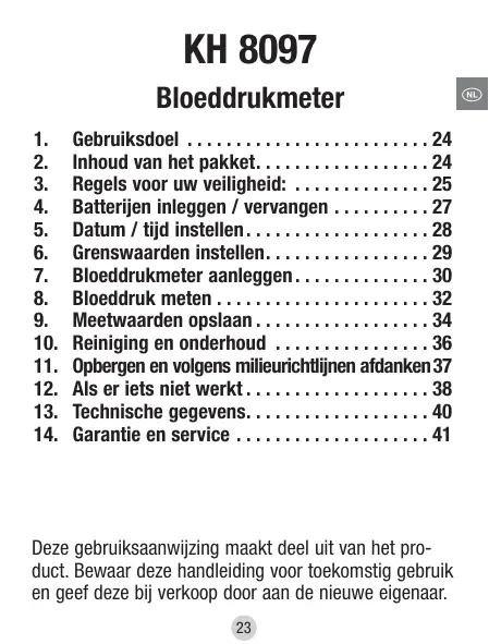 BALANCE KH 8097 AUTOTENSIOMETRE - Autotensiomètre KOMPERNASS - Gratis gebruiksaanwijzing en handleiding