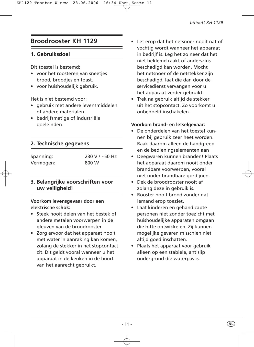 GEBRUIKSAANWIJZING BIFINETT KH 1129 GRILLE-PAIN KOMPERNASS