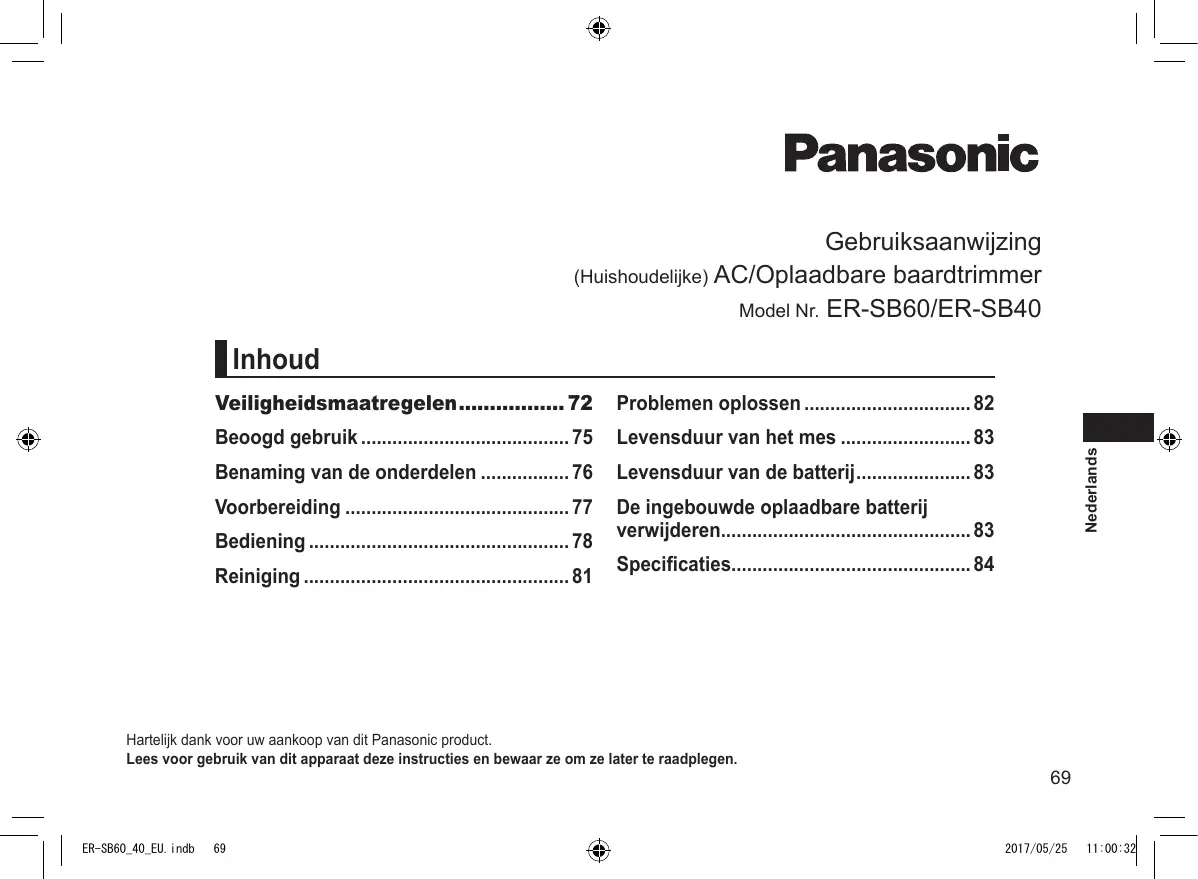 ERSB60 - Tondeuse PANASONIC - Gratis gebruiksaanwijzing en handleiding