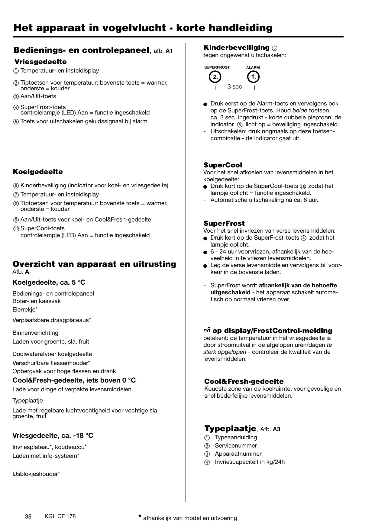 Bedienings- en contropaneel, afb. A1 Vriesgedeelte