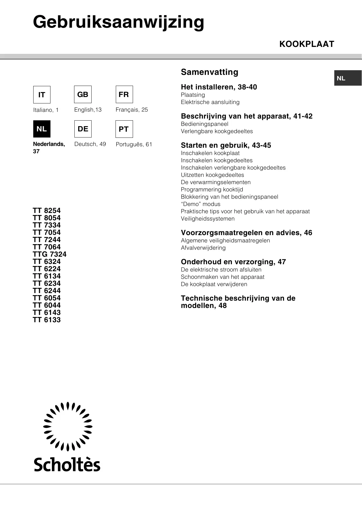 TTG 7324 - Kookplaat SCHOLTES - Gratis gebruiksaanwijzing en handleiding