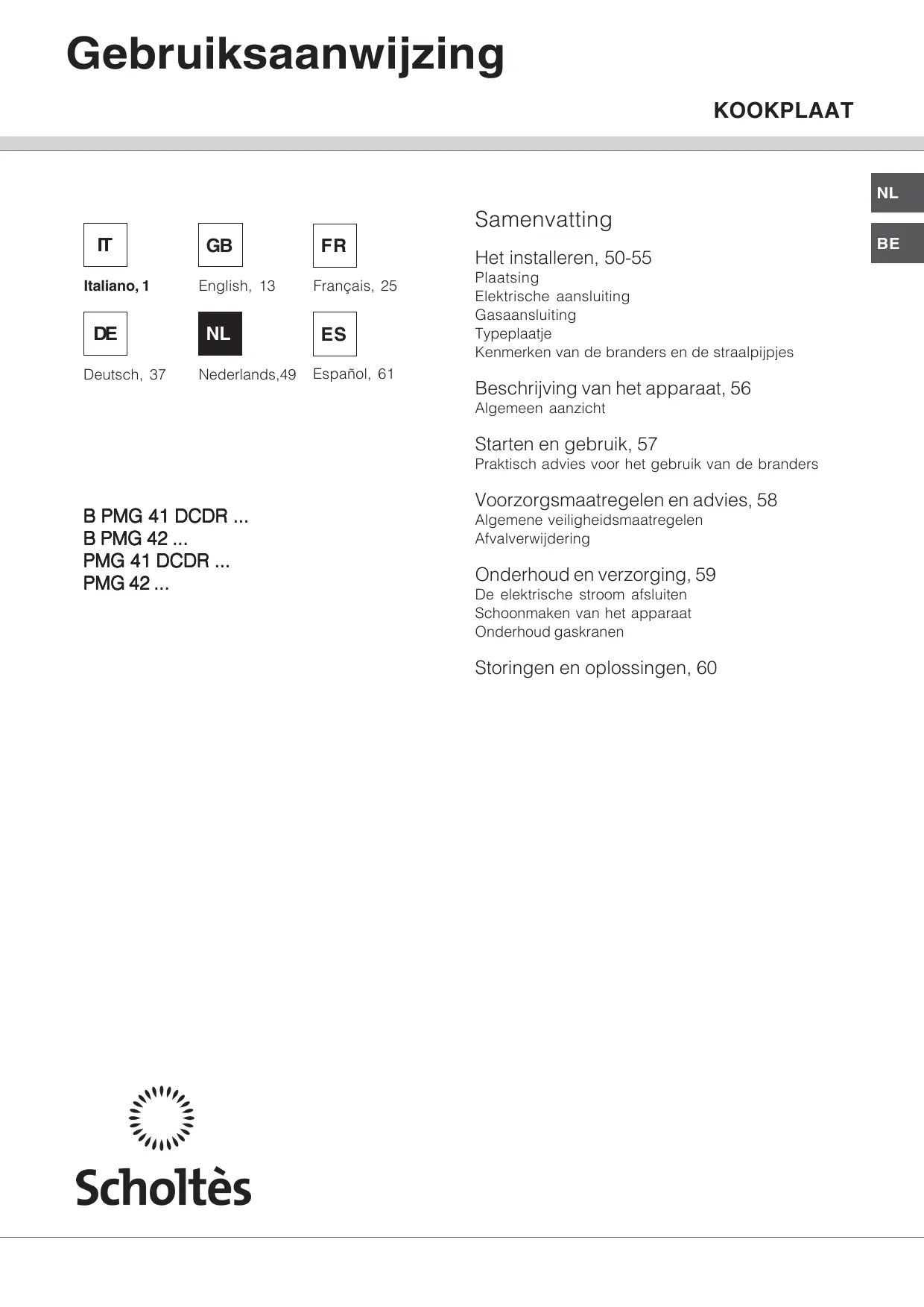 PMG 41 DCDR SF - Fornuis SCHOLTES - Gratis gebruiksaanwijzing en handleiding
