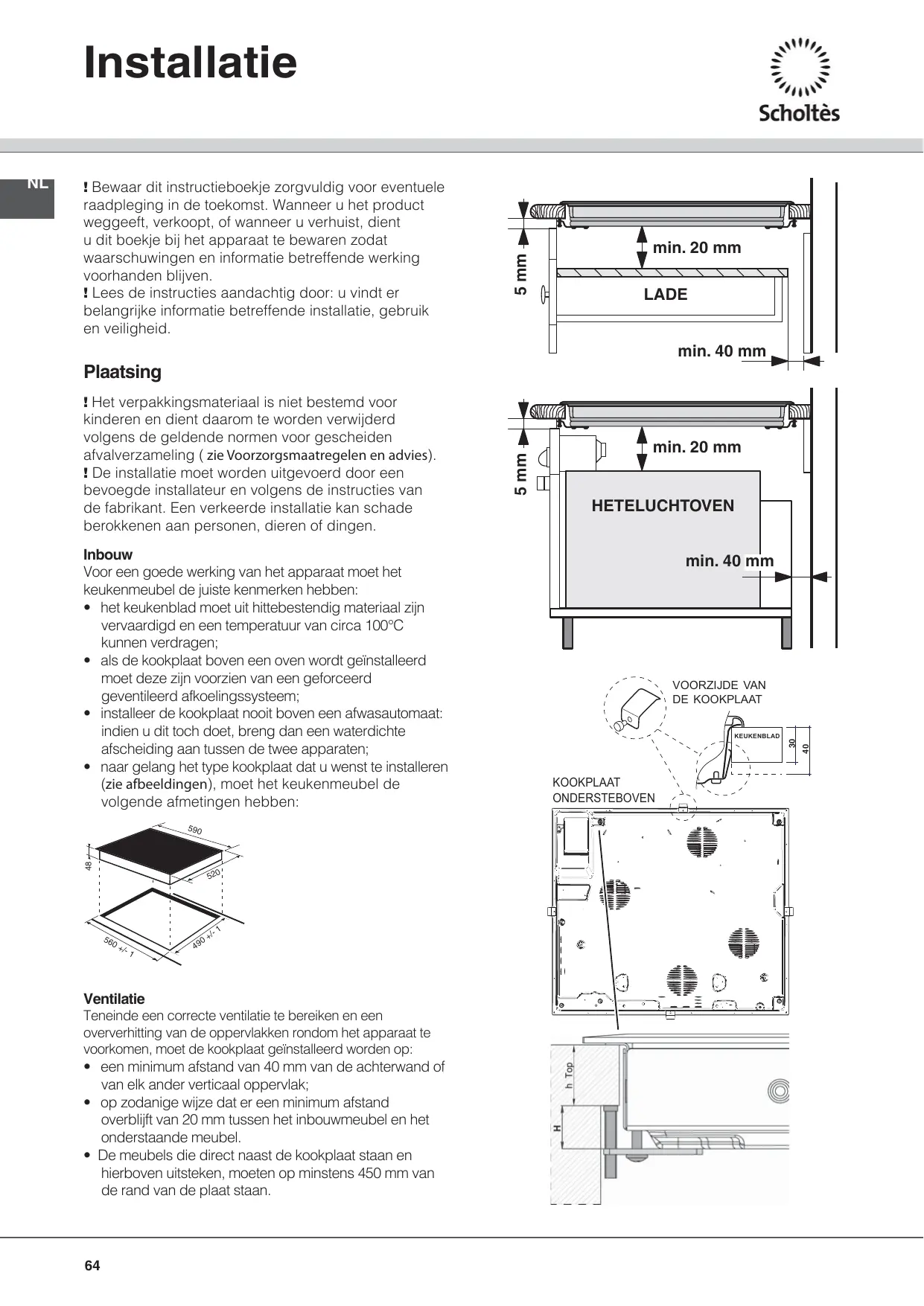 Installatie raadpleging in de toekomst. Wanneer u het product weggeeft, verkoopt, of wanneer u verhuist, dient u dit boekje bij het apparaat te bewaren zodat waarschuwingen en informatie betreffende werking voorhanden blijven. ! Lees de instructies aandachtig door: u vindt er belangrijke informatie betreffende installatie, gebruik en veiligheid. 5 mm ! Bewaar dit instructieboekje zorgvuldig voor eventuele min. 20 mm LADE min. 40 mm Plaatsing
