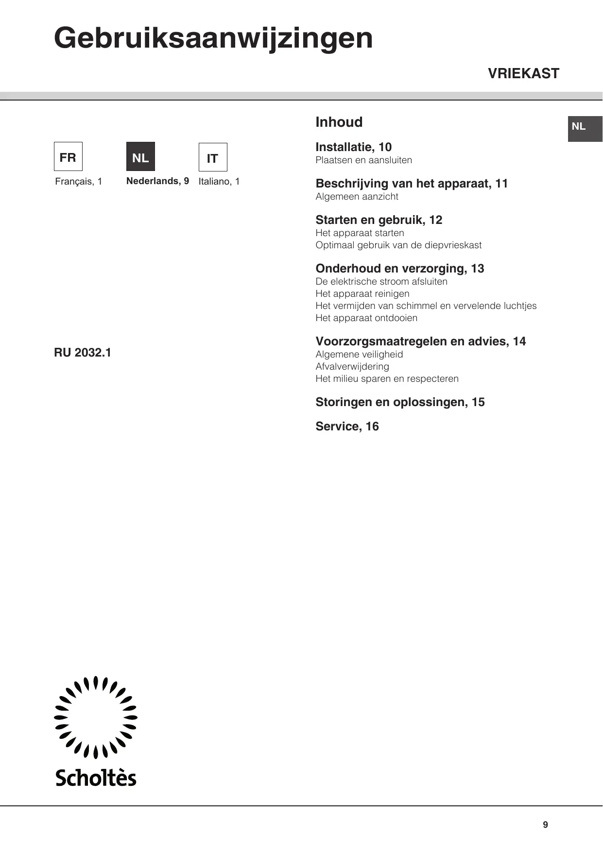RU 2032.1 - Vriezer SCHOLTES - Gratis gebruiksaanwijzing en handleiding