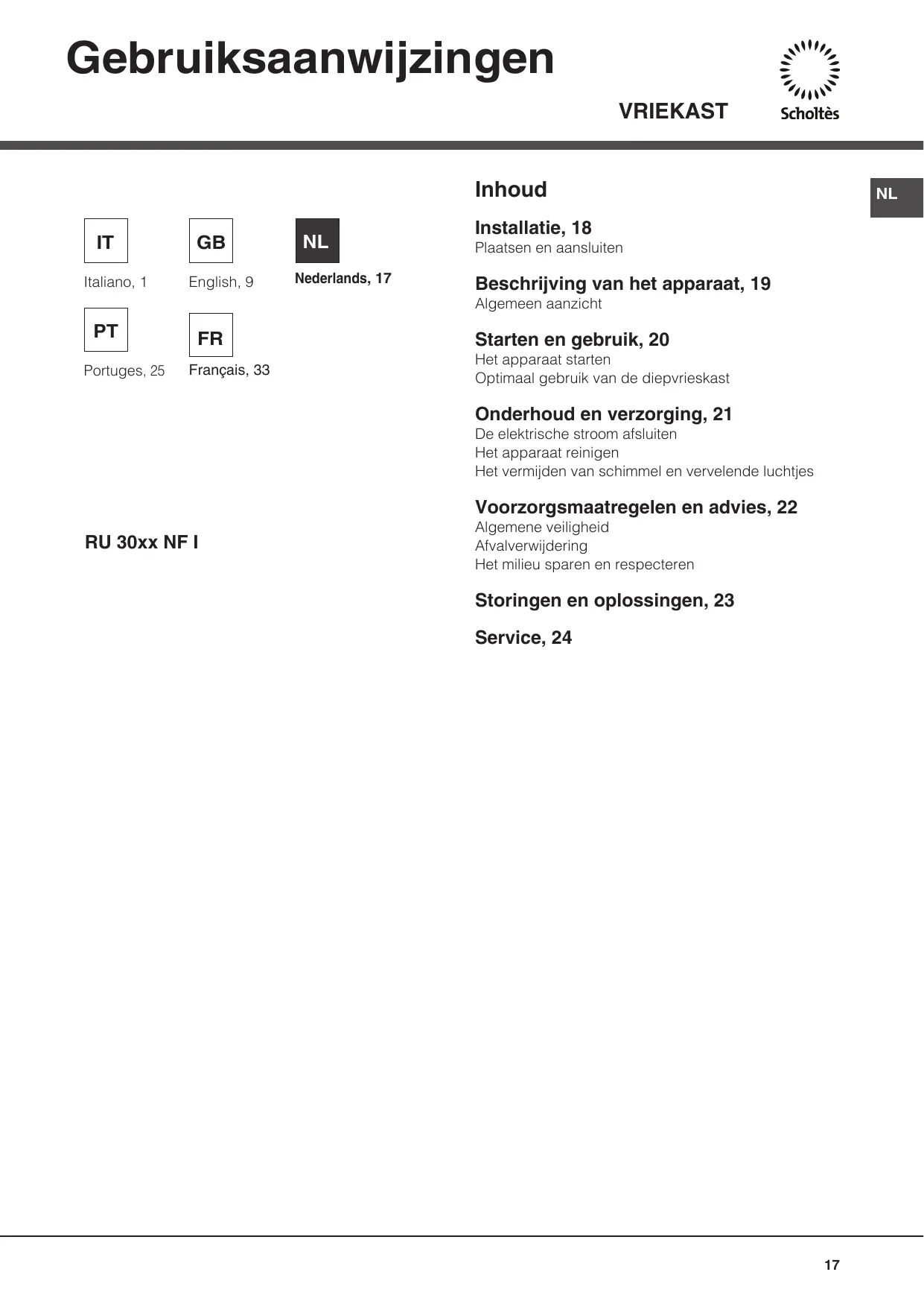 RU 3032 NF I - Vriezer SCHOLTES - Gratis gebruiksaanwijzing en handleiding