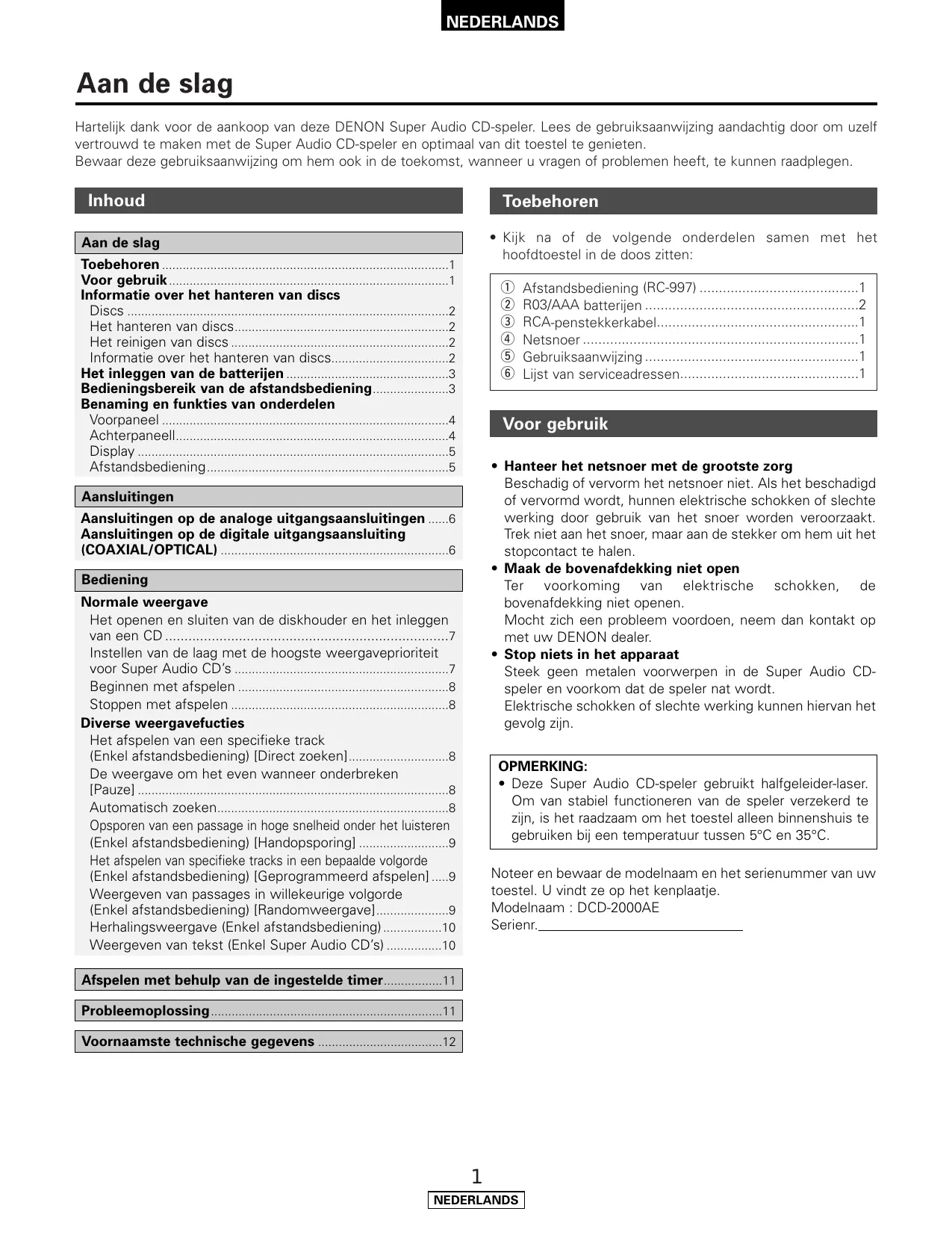 GEBRUIKSAANWIJZING DCD-2000AE DENON