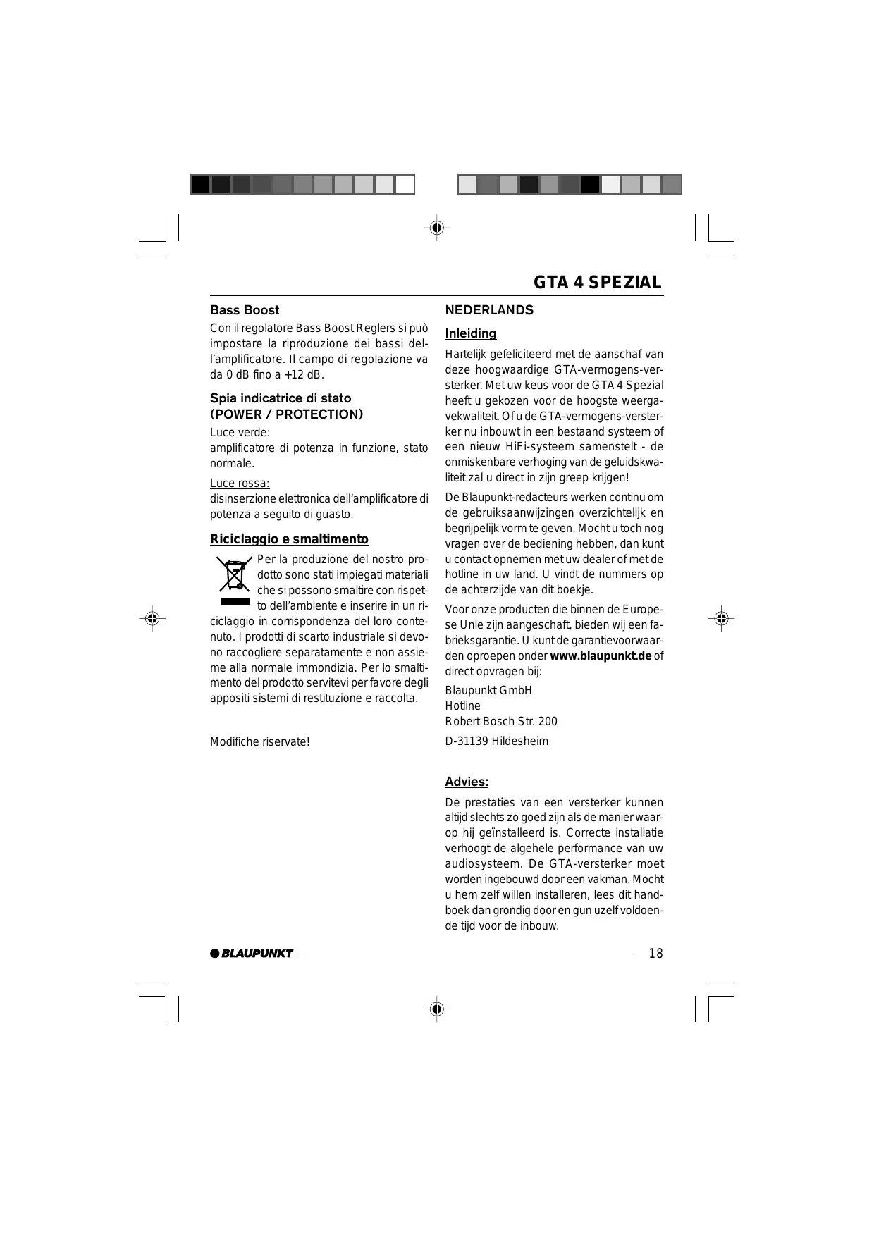 Hartelik gefeliciteerd met de aanschaf van deze hoogwaardige GTA-vermogens-ver- sterker. Metuw keus voor de GTA 4 S pezial heeft u gekozen voor de hoogste weerga- vekwaliteit. Ofu de GTA-vermogens-verster- ker nu inbouwt in een bestaand systeem of een nieuw HiFi-systeem samenstelt - de onmiskenbare verhoging van de geluidskwa- liteit zal u direct in zijn greep krijgen!