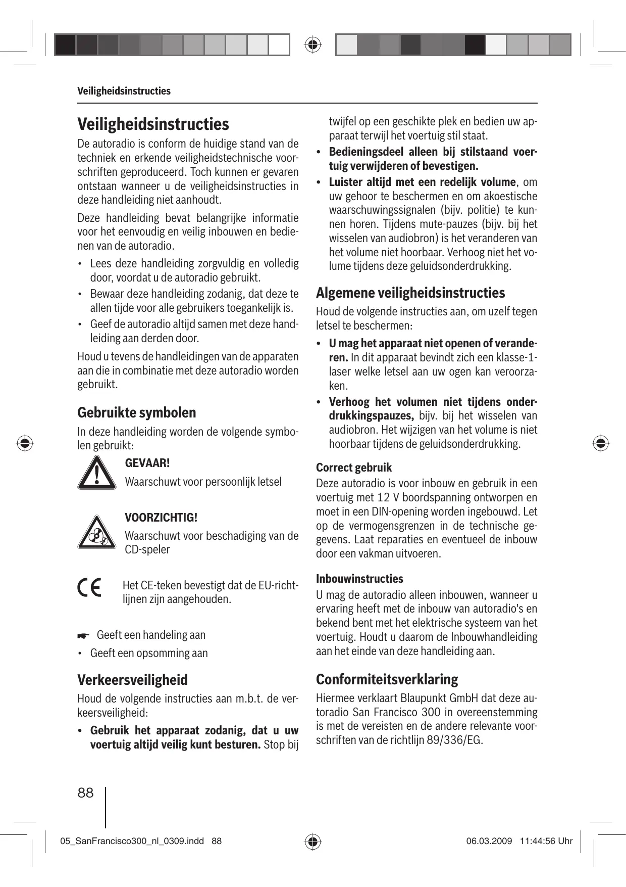 Download de handleiding voor uw Autoradio in PDF-formaat gratis! Vind uw handleiding SAN FRANCISCO 300 - BLAUPUNKT en neem uw elektronisch apparaat weer in handen. Op deze pagina staan alle documenten die nodig zijn voor het gebruik van uw apparaat. SAN FRANCISCO 300 van het merk BLAUPUNKT.