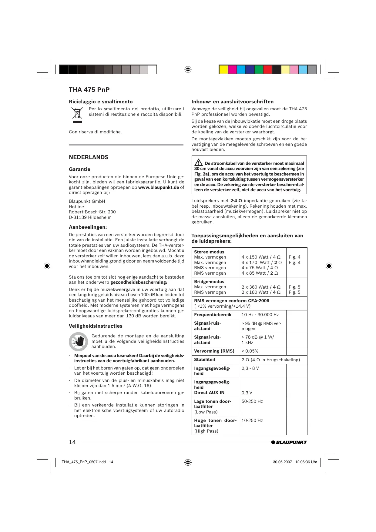 Download de handleiding voor uw Vermogensversterker in PDF-formaat gratis! Vind uw handleiding THA 475 PNP - BLAUPUNKT en neem uw elektronisch apparaat weer in handen. Op deze pagina staan alle documenten die nodig zijn voor het gebruik van uw apparaat. THA 475 PNP van het merk BLAUPUNKT.