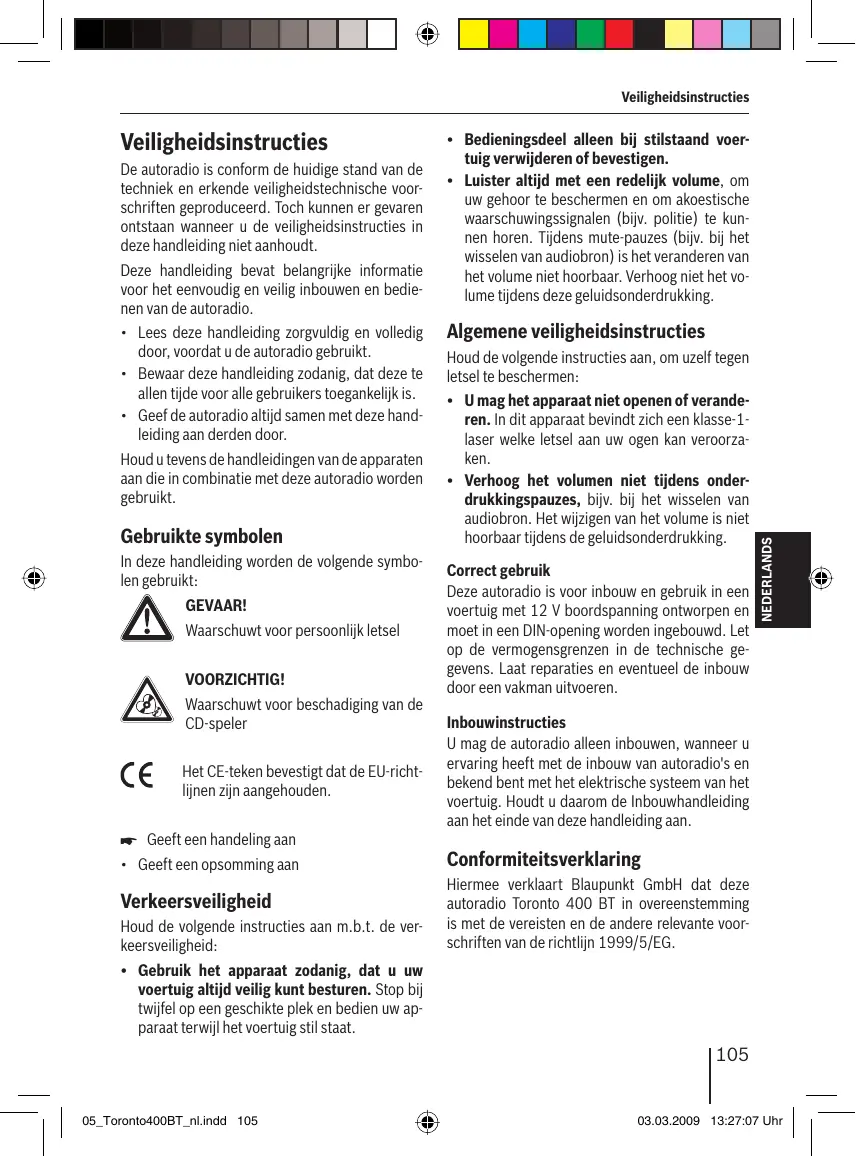 GEBRUIKSAANWIJZING TORONTO 400 BT BLAUPUNKT
