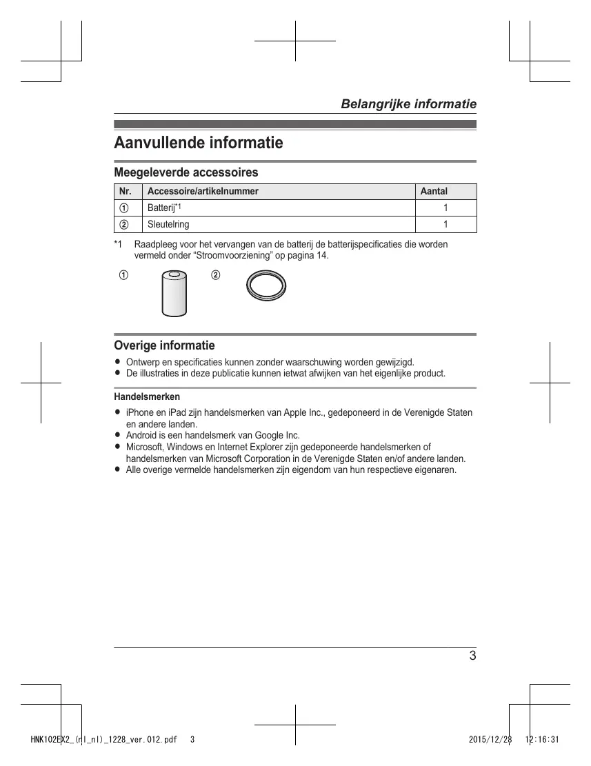 2015/12/28 12:16:31 Belangrijke informatie Aanvullende informatie Meegeleverde accessoires Nr. Accessoire/artikelnummer