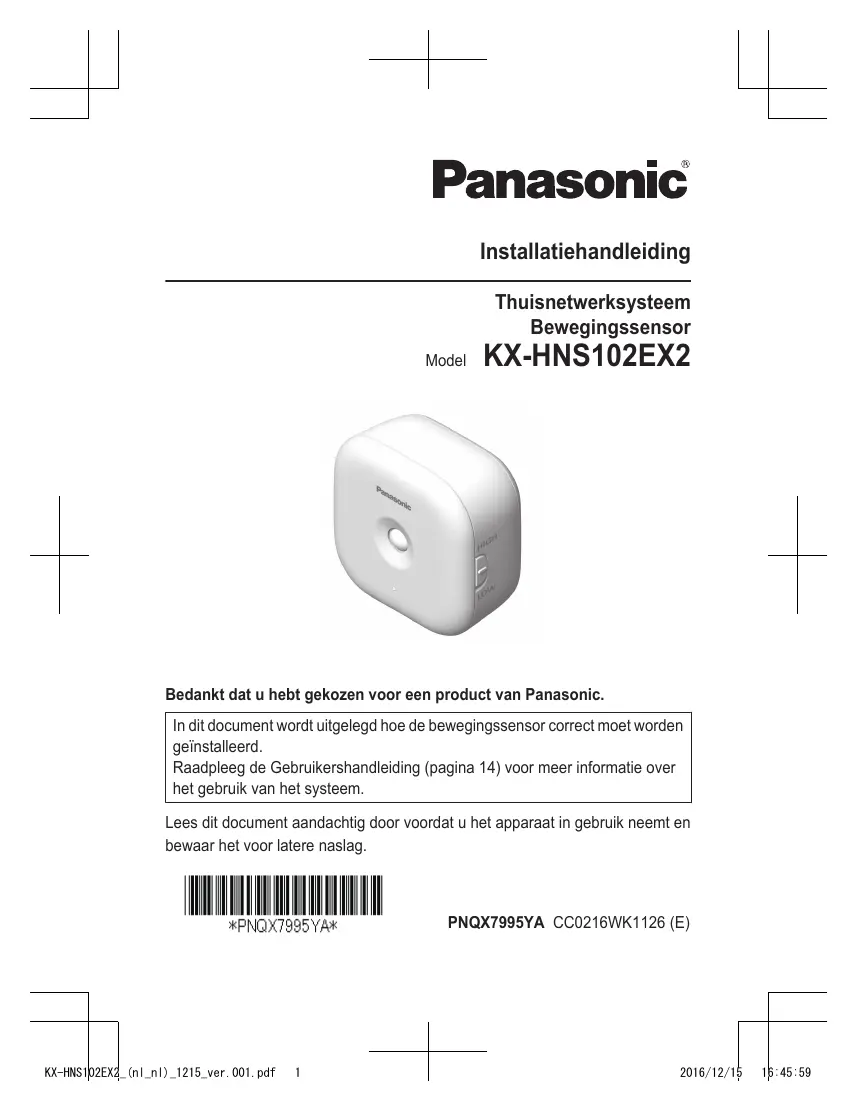 Download de handleiding voor uw Bewegingssensor in PDF-formaat gratis! Vind uw handleiding KX-HNS102EX2 - PANASONIC en neem uw elektronisch apparaat weer in handen. Op deze pagina staan alle documenten die nodig zijn voor het gebruik van uw apparaat. KX-HNS102EX2 van het merk PANASONIC.