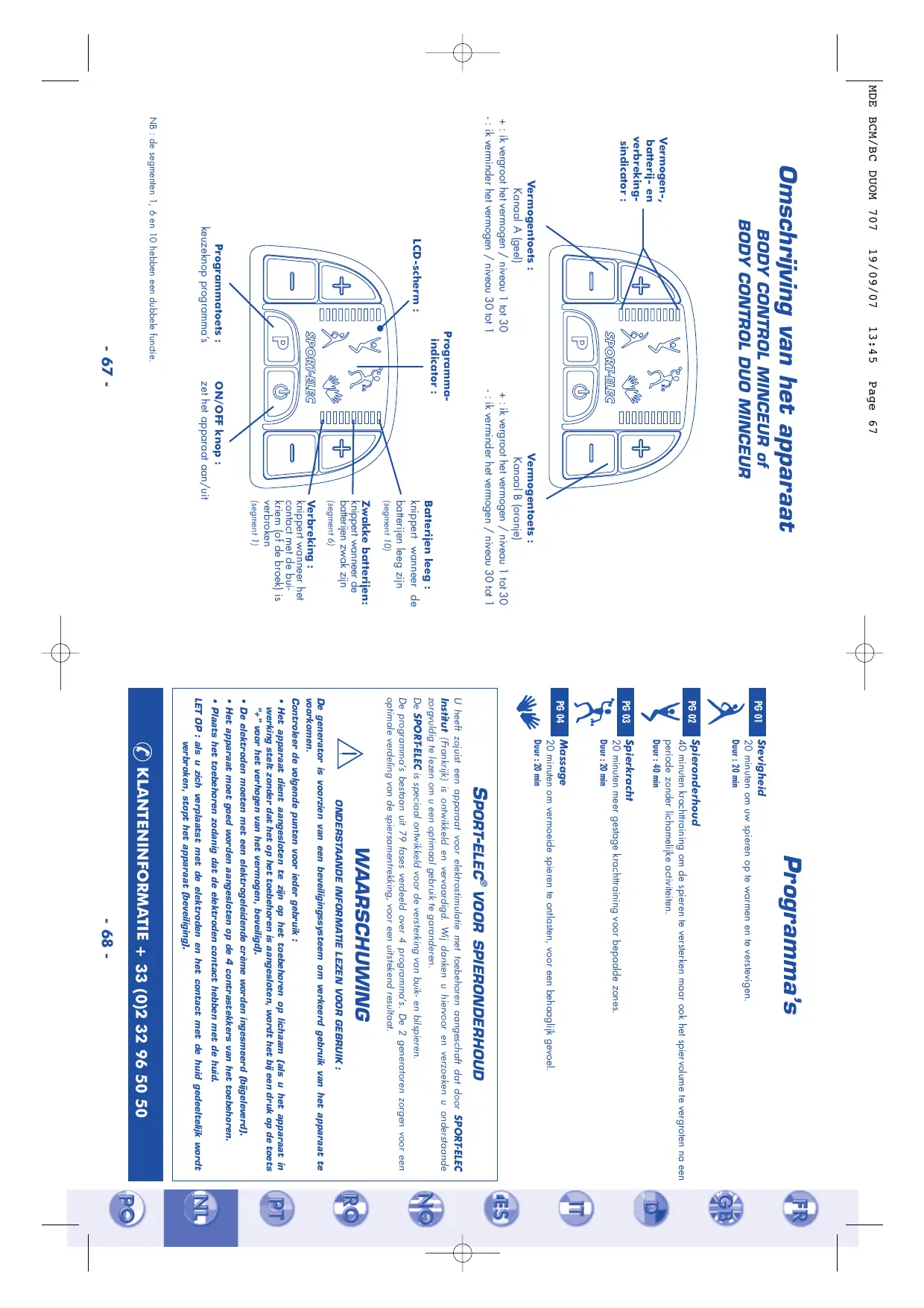 GEBRUIKSAANWIJZING BODY CONTROL DUO MINCEUR SPORT ELEC