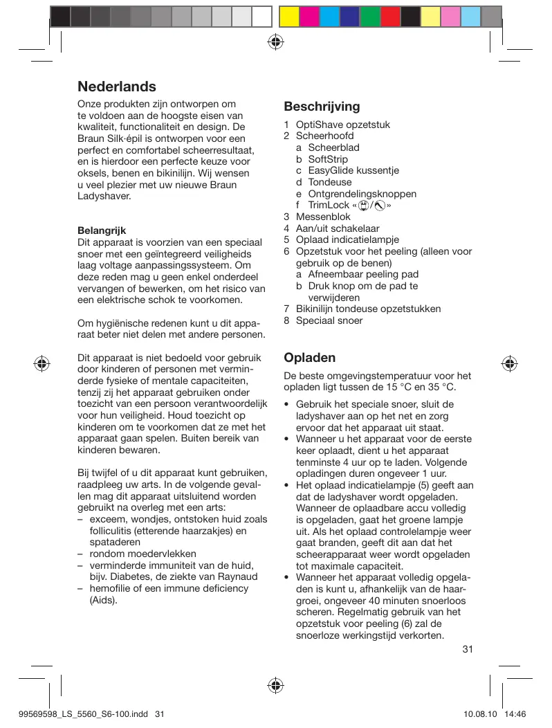 U aan het apparaat aan het einde van zifn nuttige levensduur niet bij het gewone huisvuil te deponeren. Lever het apparaat in bij een Braun Service Centre of bij de inleveradressen zoals aangegeven door uw gemeente.