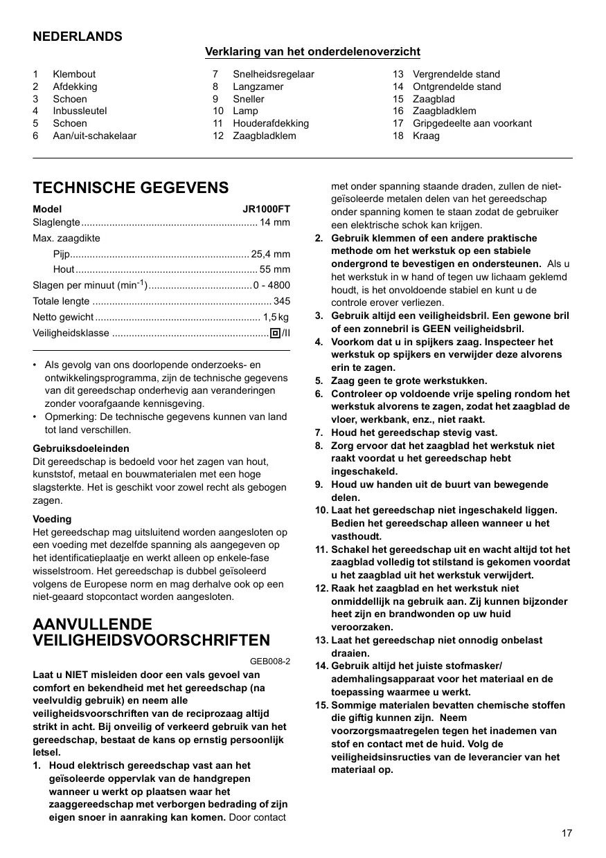GEBRUIKSAANWIJZING JR1000FT MAKITA