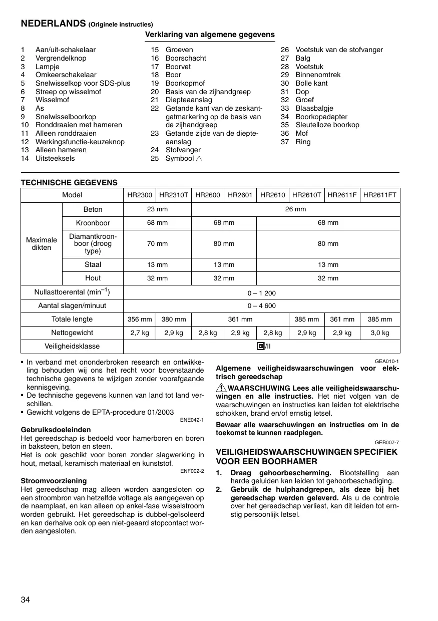 NL Boorhamer / Combinatiehamer Gebruiksaanwijzing