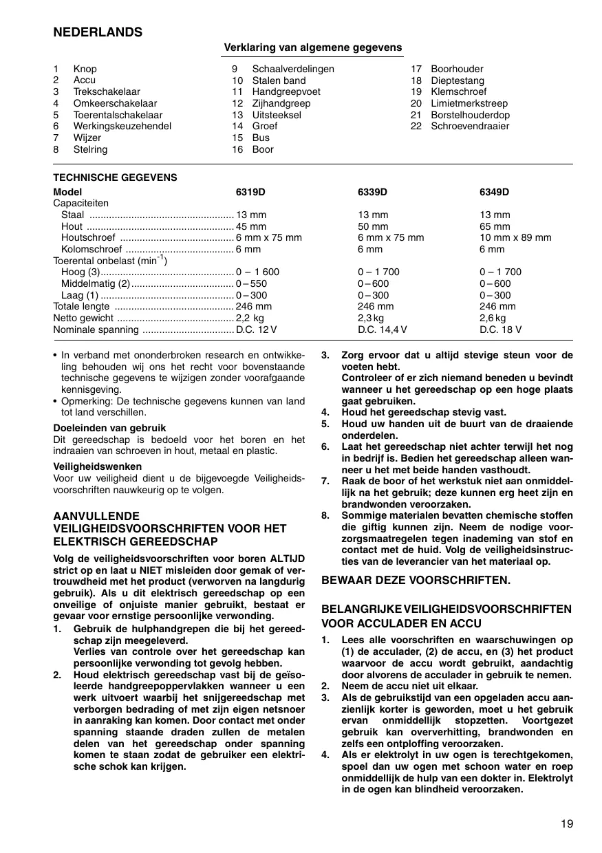 Download de handleiding voor uw Draadloze boormachine in PDF-formaat gratis! Vind uw handleiding 6349D - MAKITA en neem uw elektronisch apparaat weer in handen. Op deze pagina staan alle documenten die nodig zijn voor het gebruik van uw apparaat. 6349D van het merk MAKITA.
