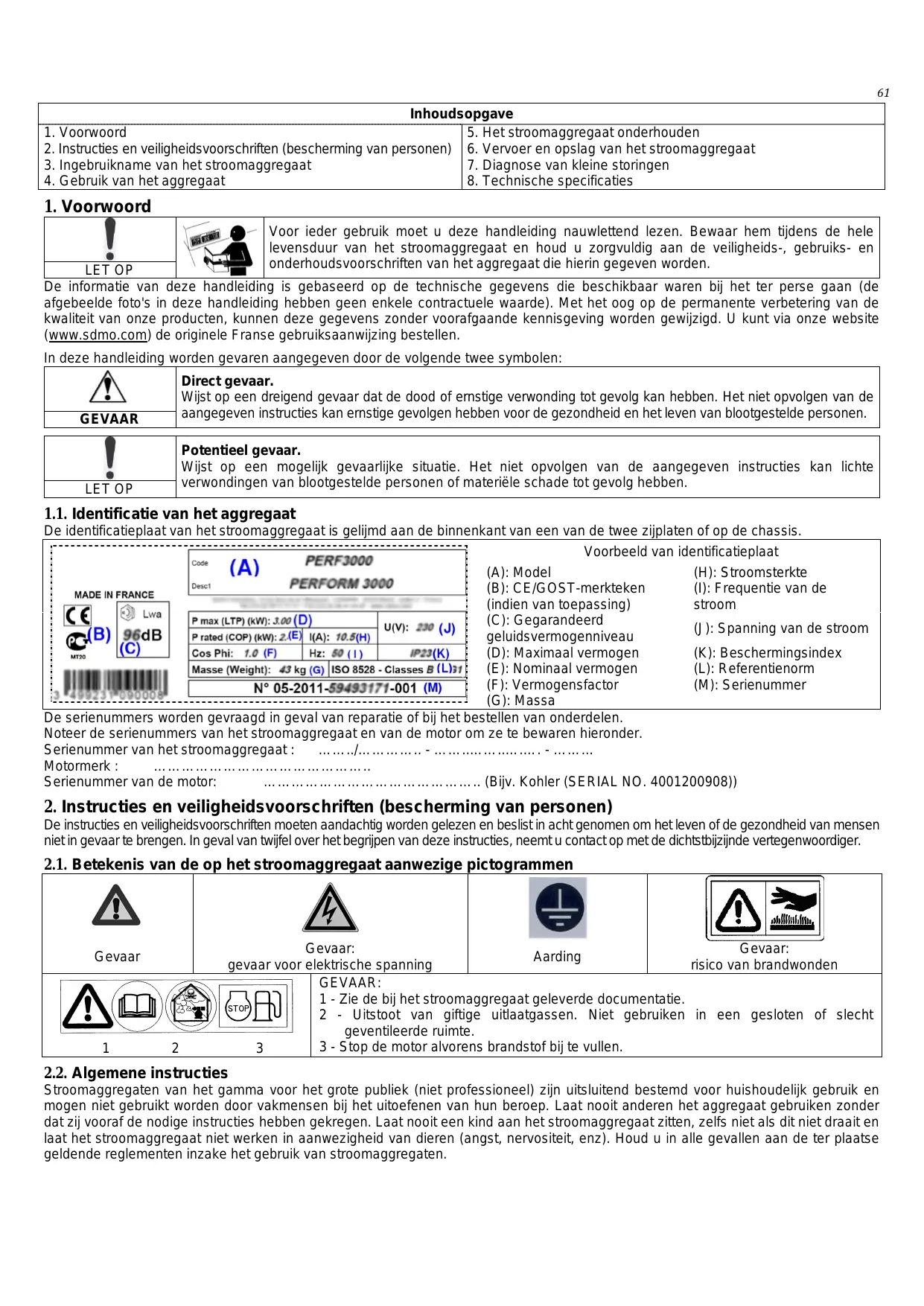 GEBRUIKSAANWIJZING VARIO 1000I, VARIO 2000I, VARIO 3000I SDMO