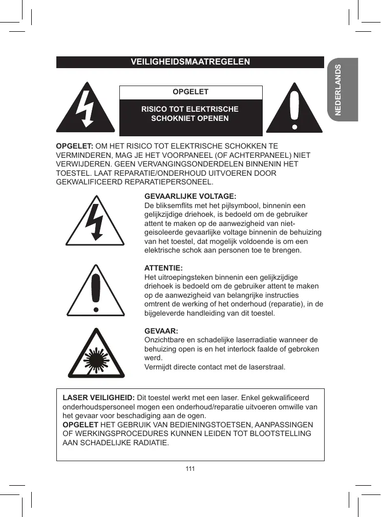 Les symboles de l’éclair et de la pointe de flèche dans un triangle permettent d’alerter l’utilisateur de la présence de ‘tension dangereuse’ non isolée à l’intérieur de l’appareil, ce qui constitue un risque d’électrocution. S