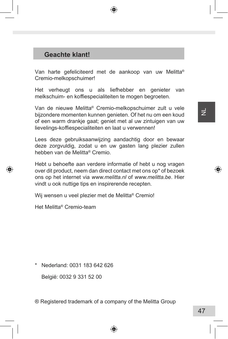 Vind de handleiding van het apparaat gratis CREMIO 100501 MELITTA in PDF-formaat.